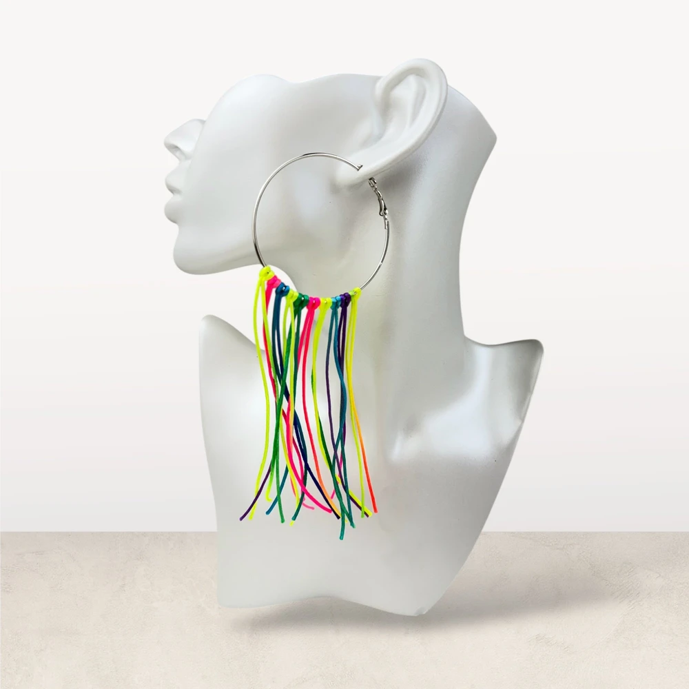 As franjas trazem dinamismo ao acessório, valorizando o rosto e proporcionando um efeito visual que alonga o pescoço. A estrutura da argola garante equilíbrio e sofisticação, tornando a peça versátil para diferentes estilos — desde produções casuais até looks mais ousados e fashionistas.