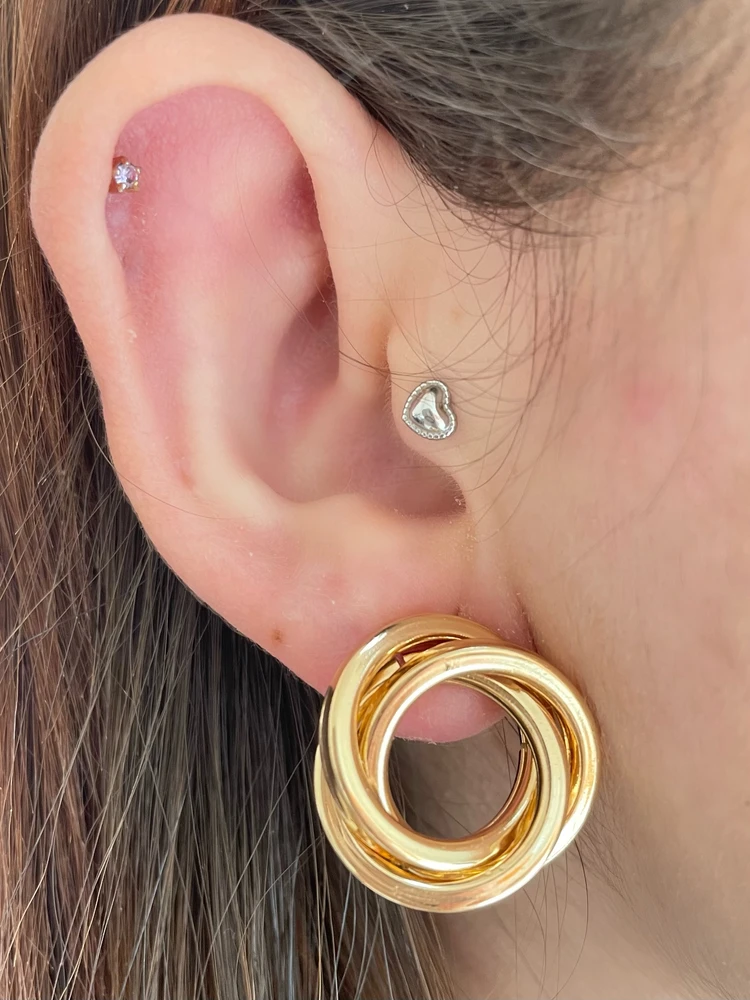 O Brinco Argolas Entrelaçadas Dourado é a escolha perfeita para quem ama acessórios sofisticados que combinam com qualquer look. Com design moderno de argolas triplas entrelaçadas, ele traz brilho, elegância e aquele toque fashion que valoriza o rosto sem exagero.
