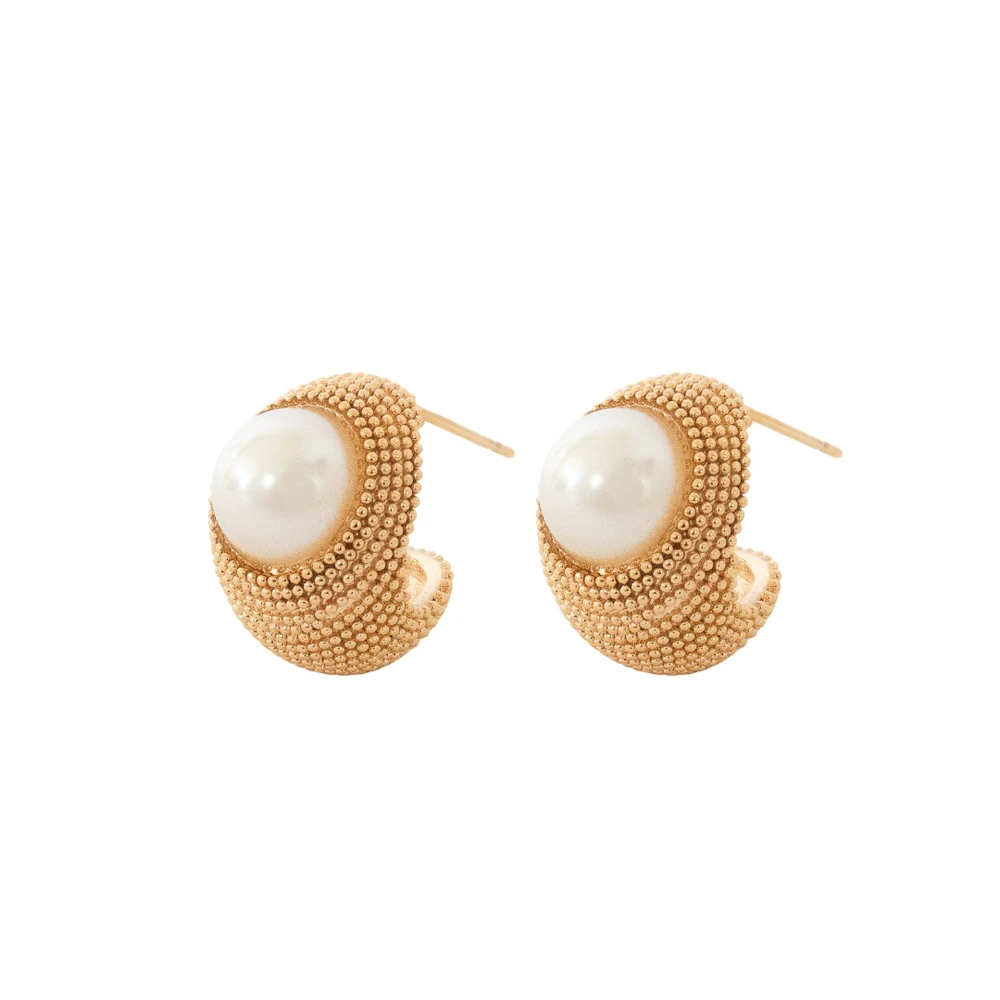 Brinco Botão Pérola Textura Banhado a Ouro 18K – Sofisticação e Elegância Atemporal