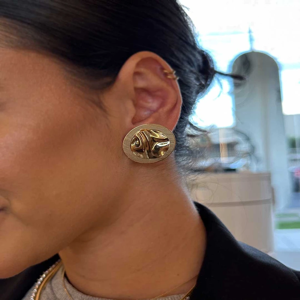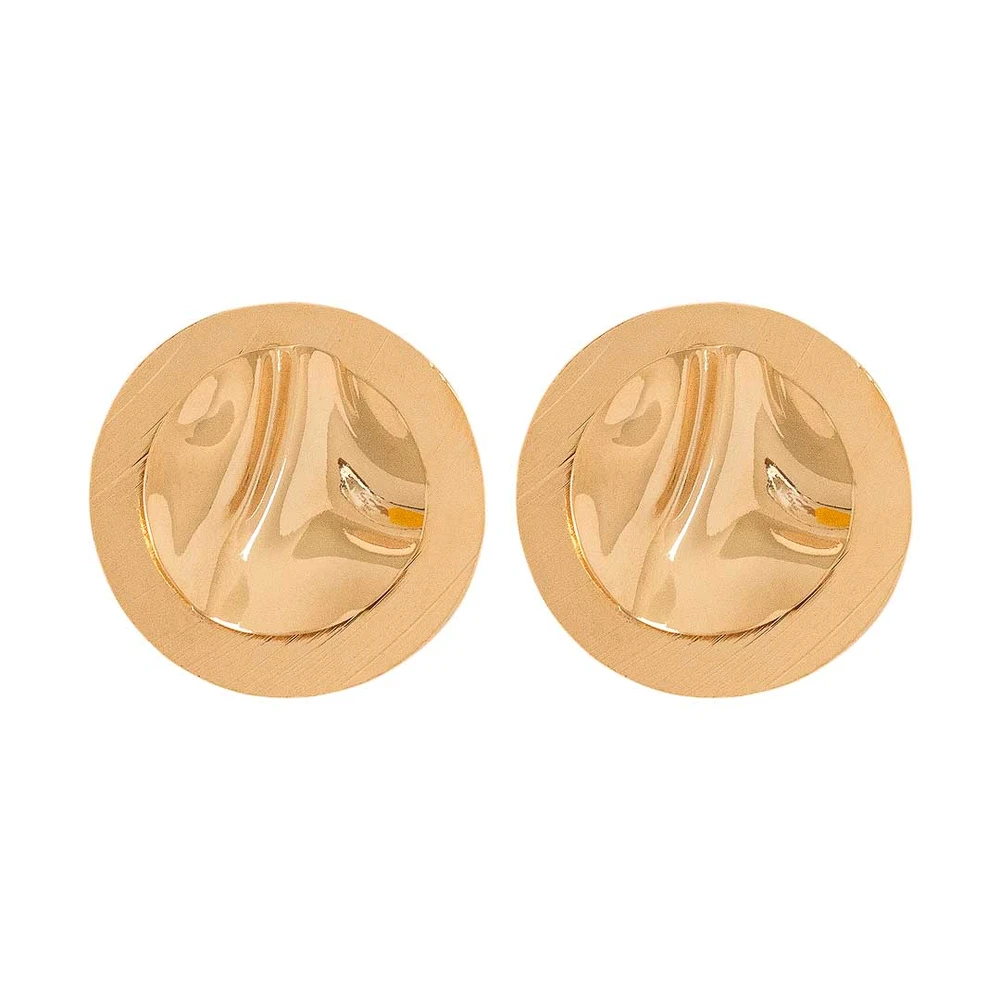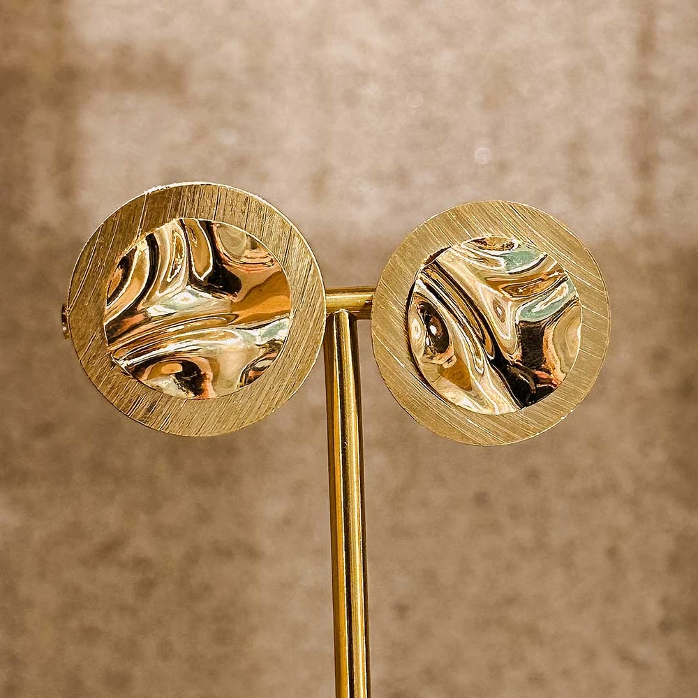 Brinco Chapa Dupla Bola Escovada Banhado a Ouro 18K – Sofisticação e Design Moderno