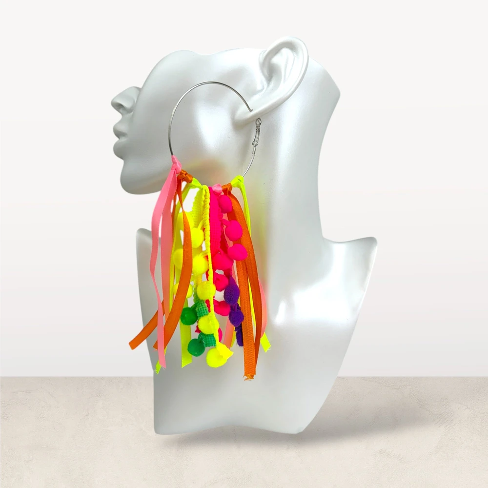 Modelo: Argola com fitas e pompons estilo festival