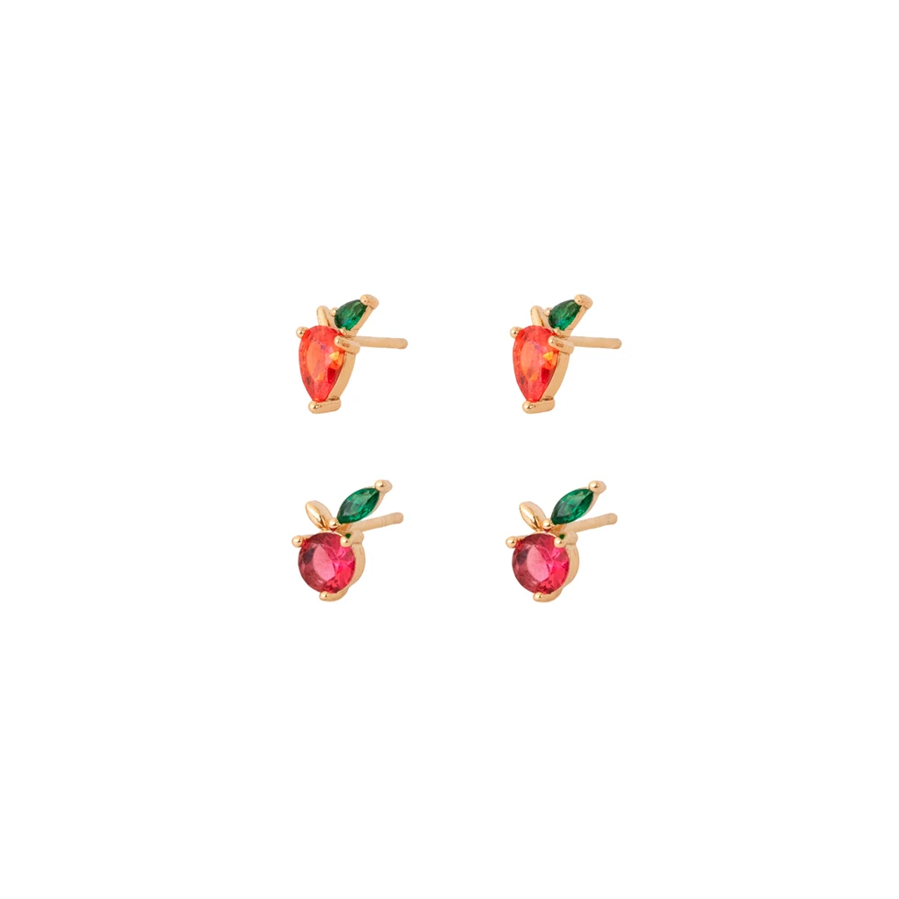 Brinco Duplinha Cenoura/Cereja Banhado a Ouro 18K – Charme e Diversão em Cada Detalhe