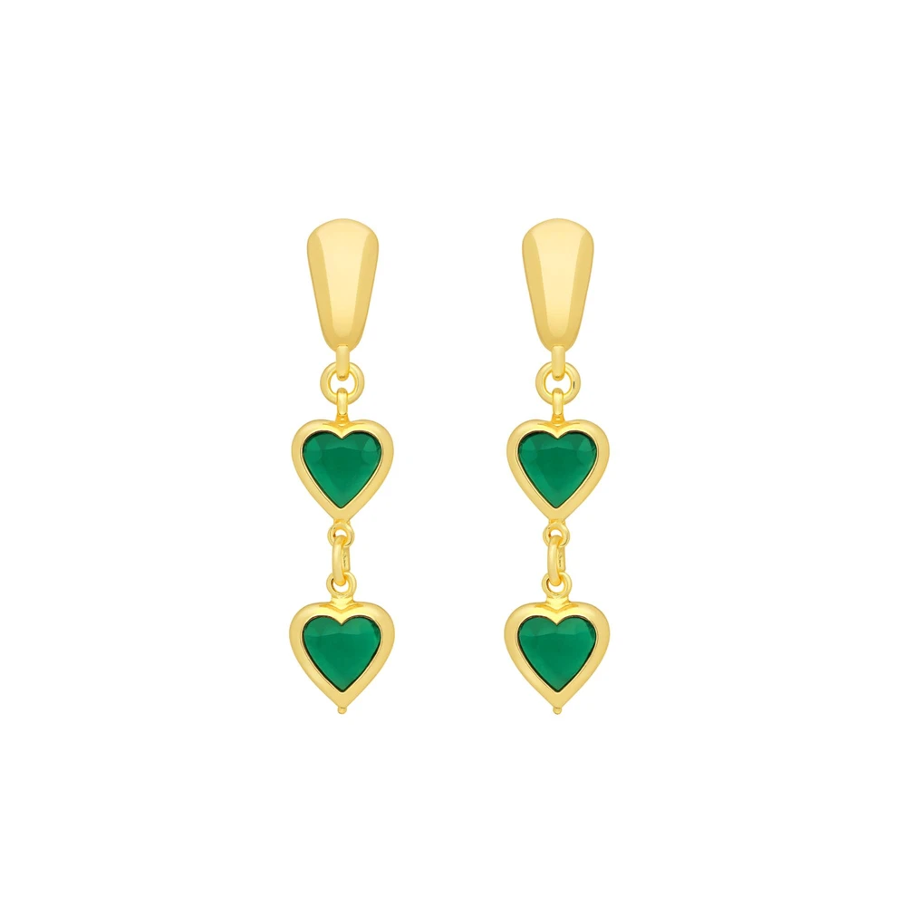 Brinco Duplo Coração Turmalina - Banhada em Ouro 18k