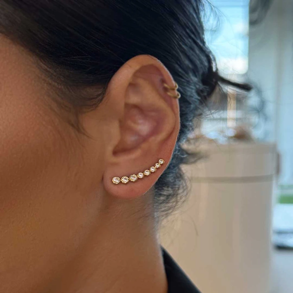 Brinco Ear Cuff 8 Zircônias Banhado a Ouro 18K – Brilho e Elegância em Cada Curva