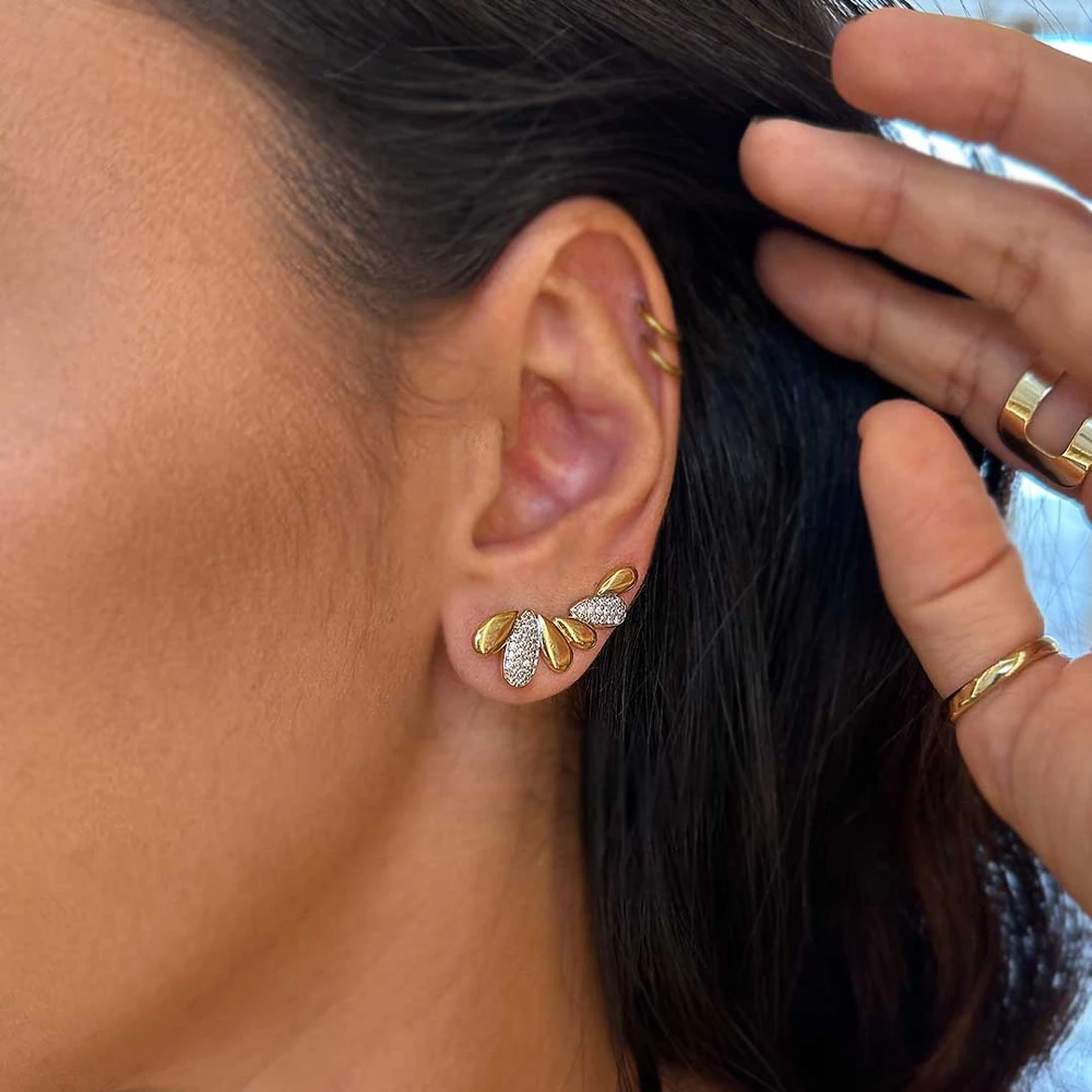 Brinco Ear Cuff Pétalas Banhado a Ouro 18K – Delicadeza e Sofisticação em Cada Detalhe