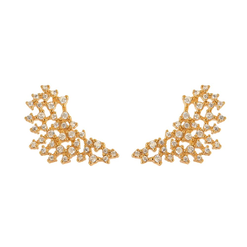 Brinco Ear Cuff Pontilhado Zircônia Banhado a Ouro 18K – Brilho e Sofisticação em Detalhes Delicados