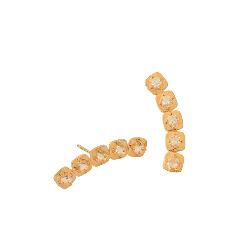 Brinco Ear Cuff Quadra Cristal Banhado a Ouro 18K – Geometria e Brilho com Sofisticação