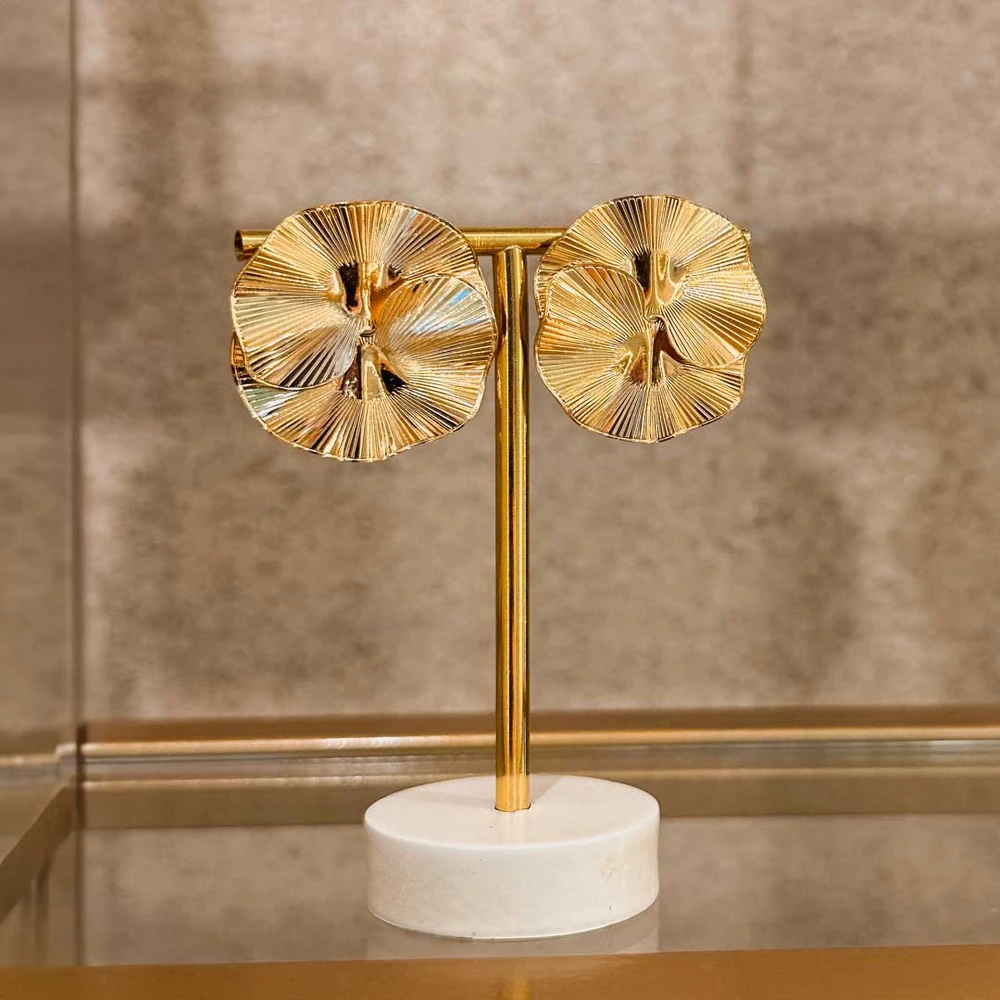 Brinco Enigma Babado Tam P Banhado a Ouro 18K – Delicadeza e Sofisticação em Cada Detalhe