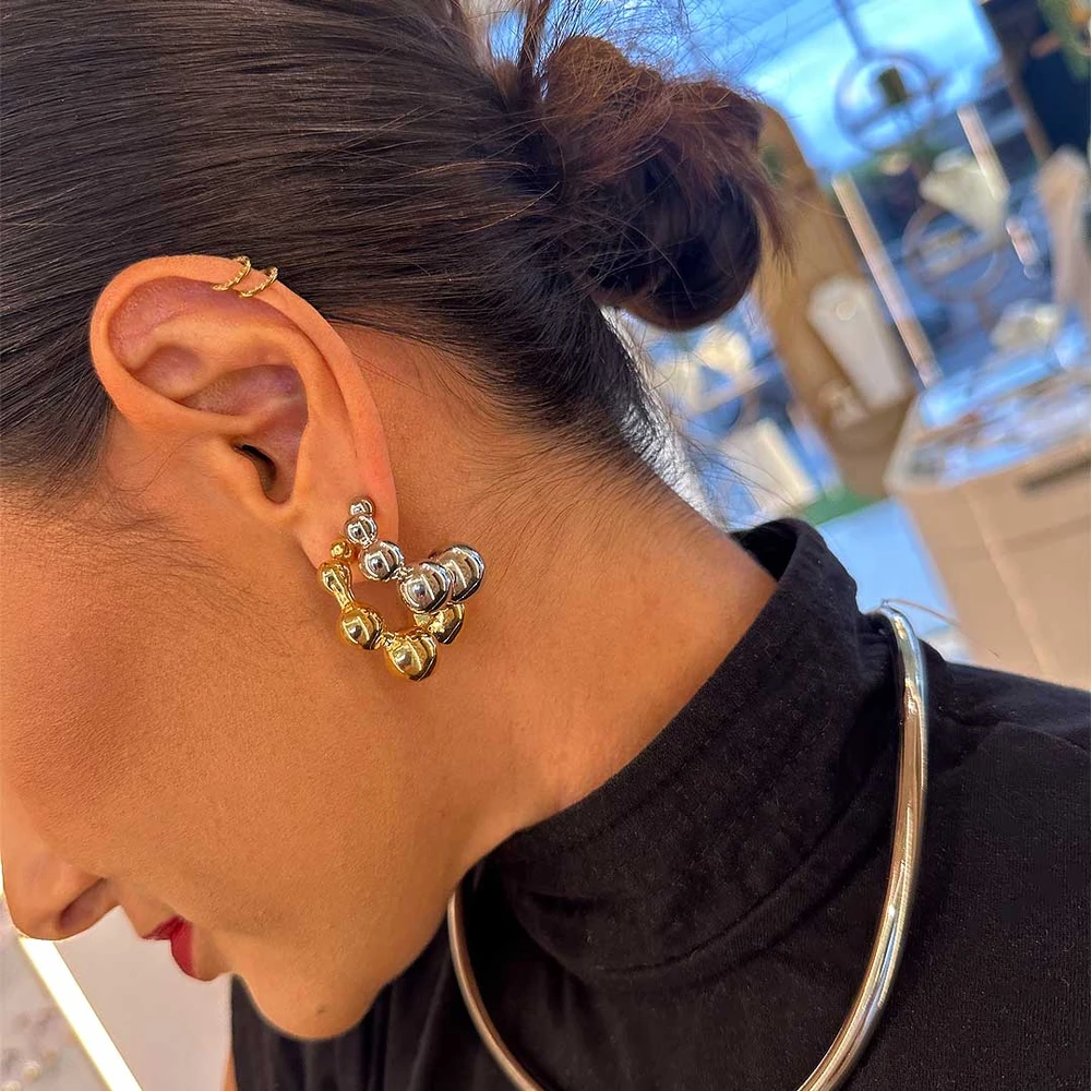 Leve e confortável, o Brinco Esferas Degradê se ajusta facilmente à orelha, permitindo uso diário ou em ocasiões especiais, sendo perfeito para combinar com outros acessórios ou brilhar sozinho como destaque do visual.
