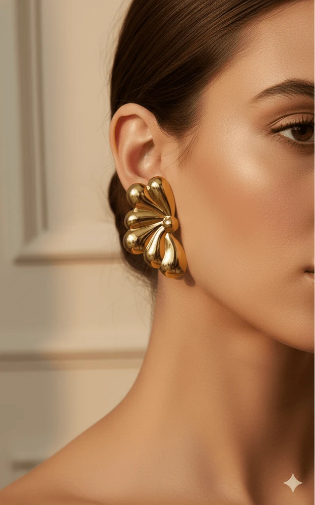 O Brinco Feminino Flor Marcela com Design Esculpido e Acabamento Espelhado é uma peça marcante que une sofisticação, modernidade e elegância em um único acessório. Seu formato floral estilizado apresenta pétalas volumosas com efeito escultural, criando um visual impactante e refinado.