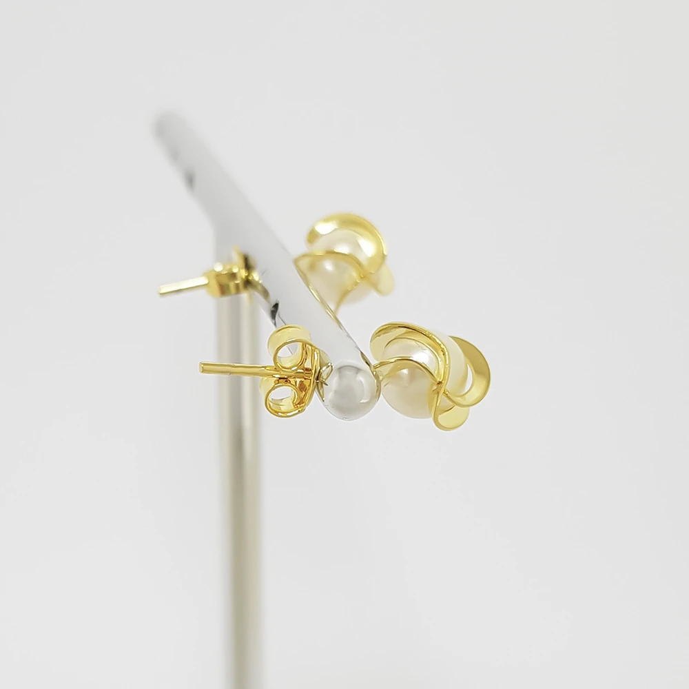 Brinco fixo de pérola com globinho torcido M BANHADO A OURO 18K Dimensões / Peso:• Banho: Ouro 18k• Peso: 0,8g