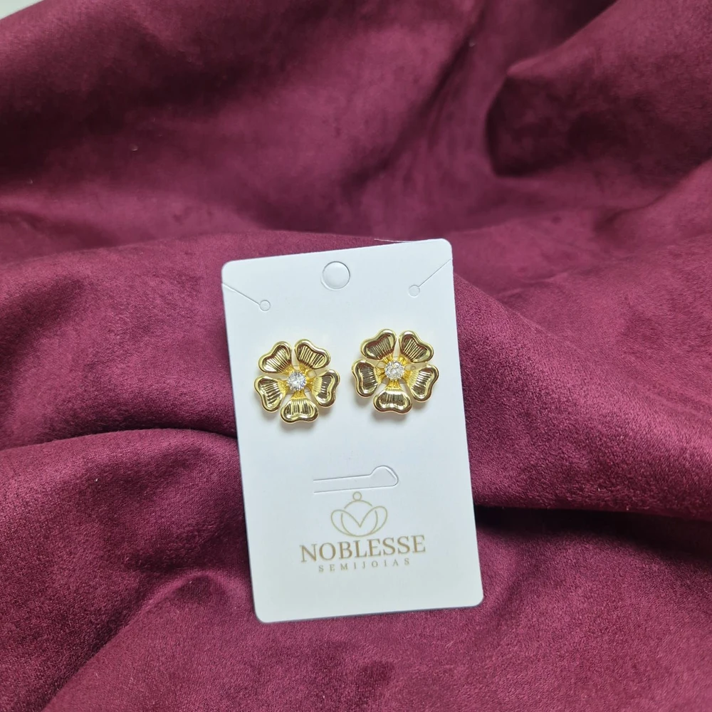 BRINCO FLOR COM CRISTAL BANHADO OURO 18K
