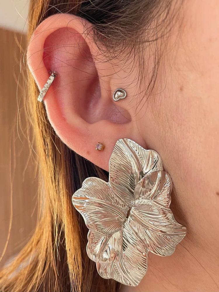 O Brinco Flor Metálica Grande é o acessório perfeito para quem ama um toque de elegância com presença marcante 🌺✨