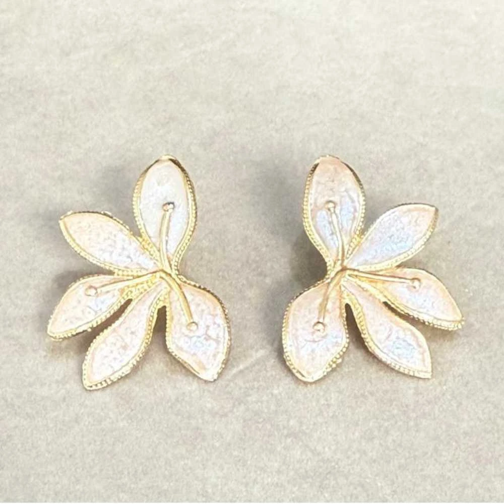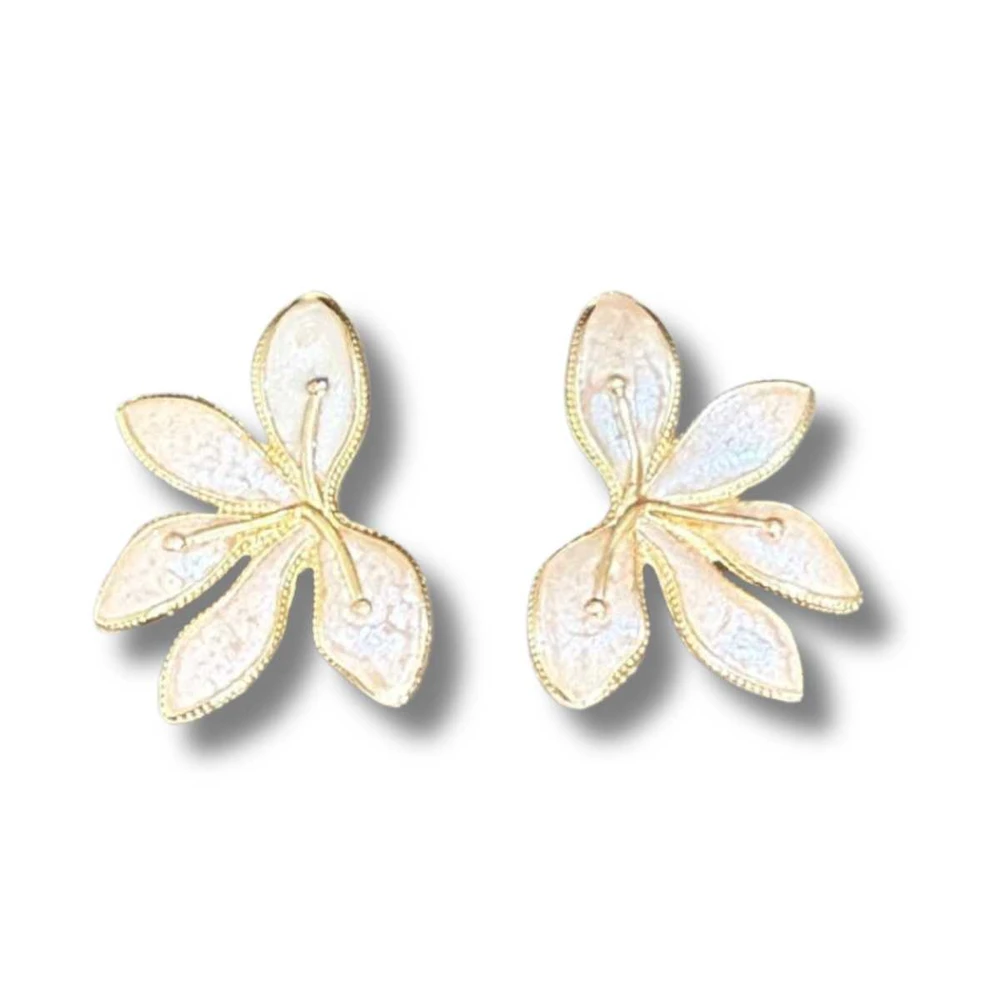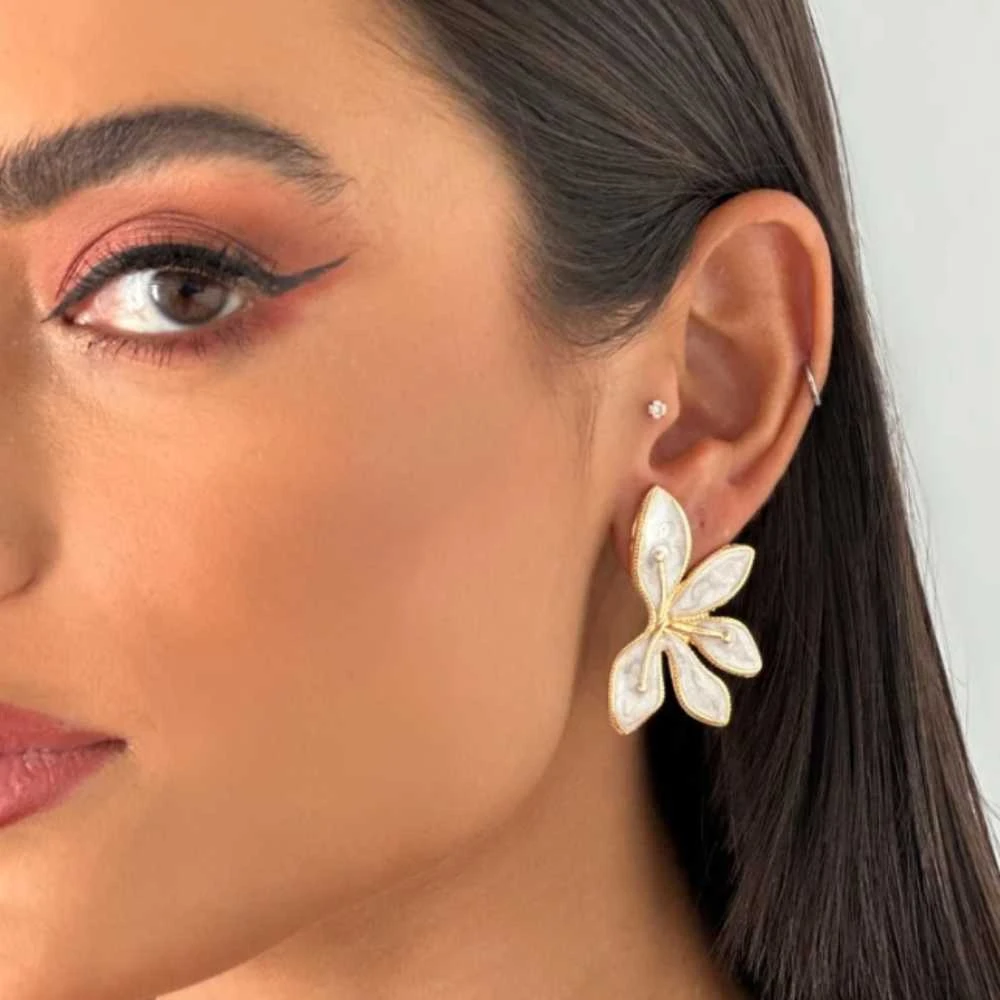 Brinco Flor Resinada Marfim Banhado em Ouro 18k