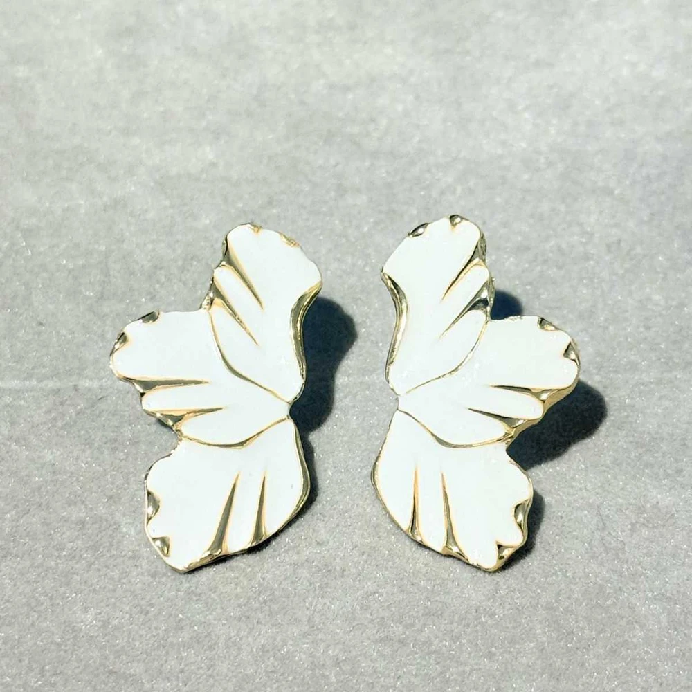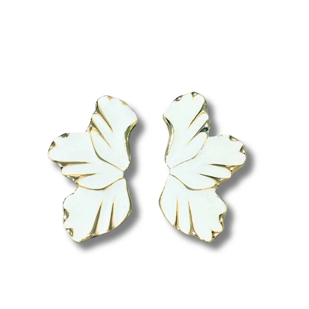 Brinco Folha Flor Branca Banhado em Ouro 18k