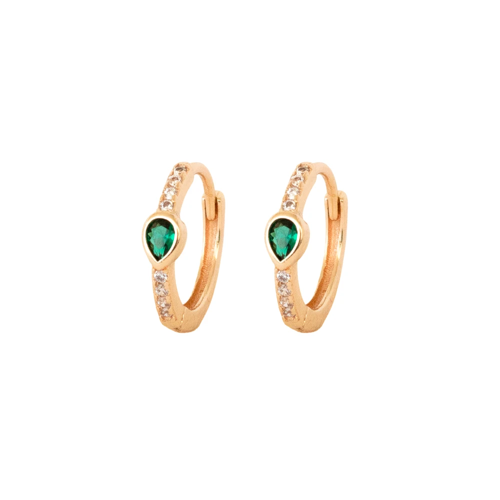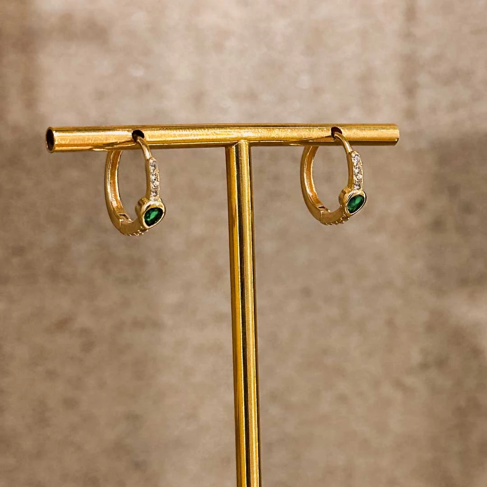 Brinco Gota Verde Esmeralda Banhado a Ouro 18K – Elegância e Cor que Encantam
