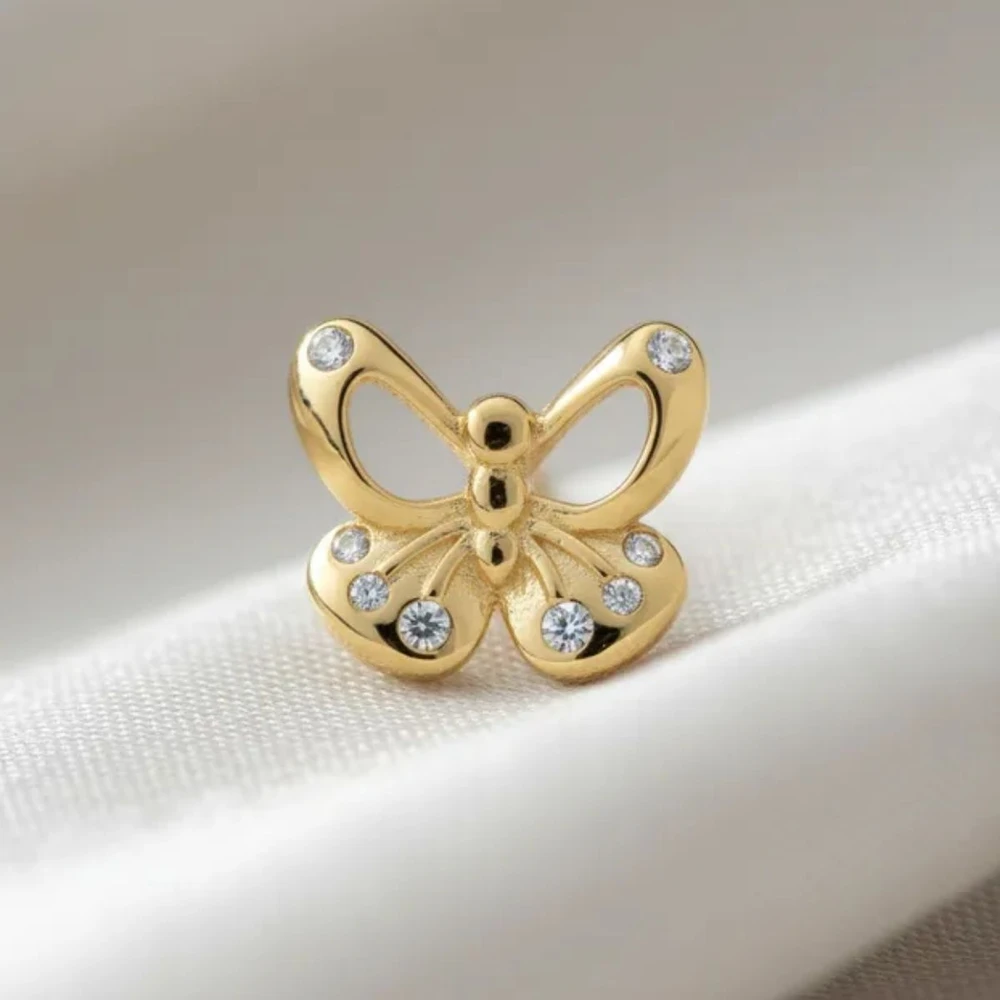 Brinco Infantil Vazado de Borboleta com Zircônia Banhado a Ouro Zarpellon, perfeito para realçar a delicadeza e o charme das pequenas. Com design leve e sofisticado, este brinco traz uma borboleta vazada adornada por zircônias brilhantes, garantindo um toque de brilho sutil e elegante. Ideal para uso diário, combina conforto e segurança para crianças.