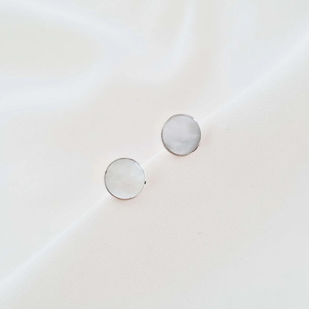 Brinco de Prata com Pedra Madrepérola, com tarraxa.