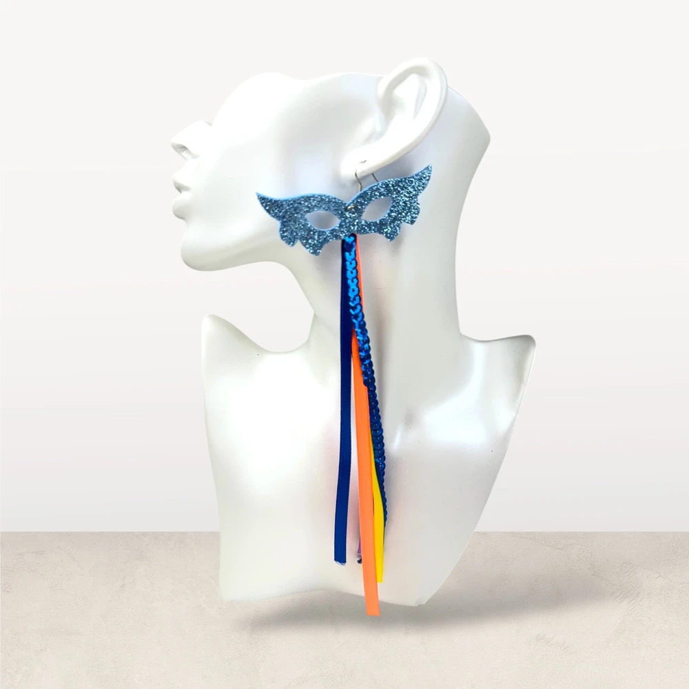 Brinco Feminino Máscara Carnaval com Franjas Decorativas