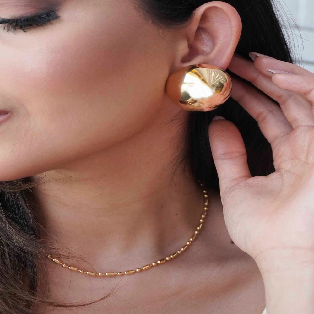 O Brinco Max Bola Tamanho M Banhado a Ouro 18K é a escolha perfeita para quem busca elegância e sofisticação em acessórios que realçam a beleza natural. Com seu design clássico e acabamento impecável em banho 18K, este brinco oferece brilho duradouro e resistência ao desgaste diário, garantindo um visual sofisticado em qualquer ocasião. Ideal para uso diário ou eventos especiais, ele se destaca pela versatilidade e conforto, valorizando o rosto com um toque moderno e atemporal.