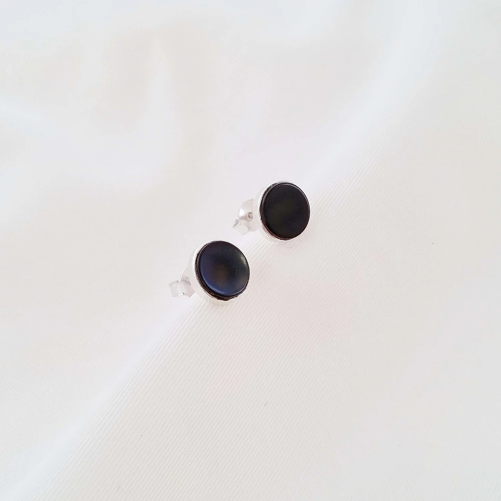 Brinco de Prata com Pedra Onix, com tarraxa.