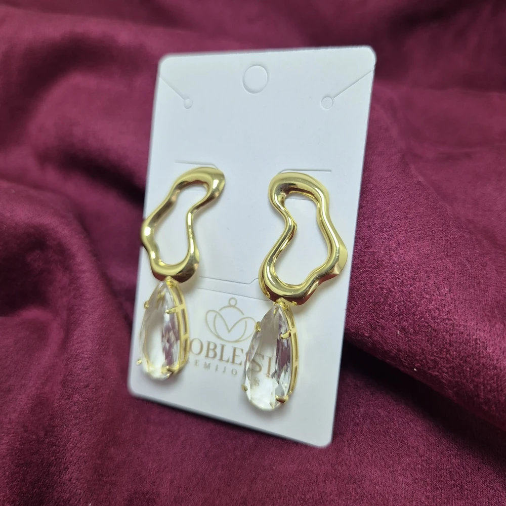 BRINCO ORGÂNICO COM CRISTAL BANHADO OURO 18K