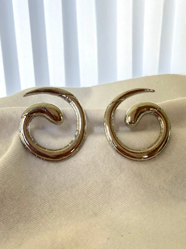 brinco espiral, brinco orgânico, brinco moderno, brinco volumoso, brinco dourado, acessório sofisticado, brinco diferente, brinco tendência