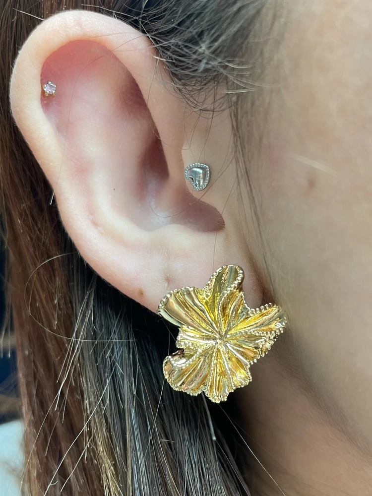 O Brinco Flor Metalizada é aquele acessório perfeito para transformar qualquer look com elegância e presença. Feito em metal leve, ele possui design trabalhado em alto-relevo que imita pétalas fluidas, trazendo um efeito sofisticado, moderno e iluminado.