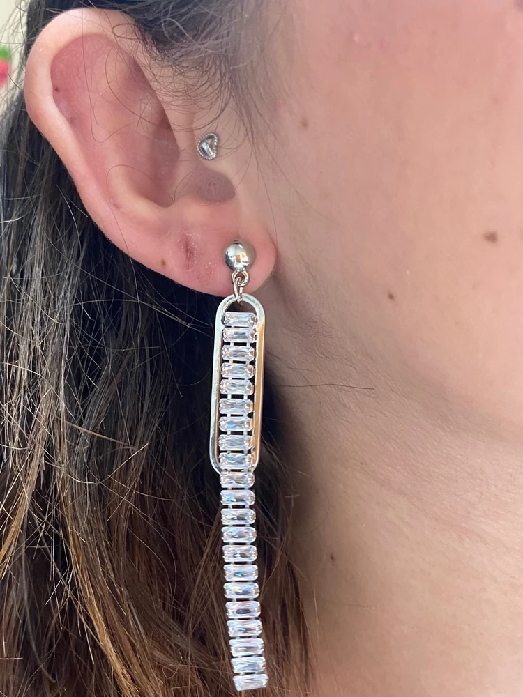 O Brinco Riviera Penduradinho de Strass da Alemão Bijuterias tem design fino e delicado, com fileira de strass brilhantes que caem suavemente, criando movimento e sofisticação no visual. Um acessório leve, mas com alto impacto visual — perfeito pra quem ama brilhar com elegância.