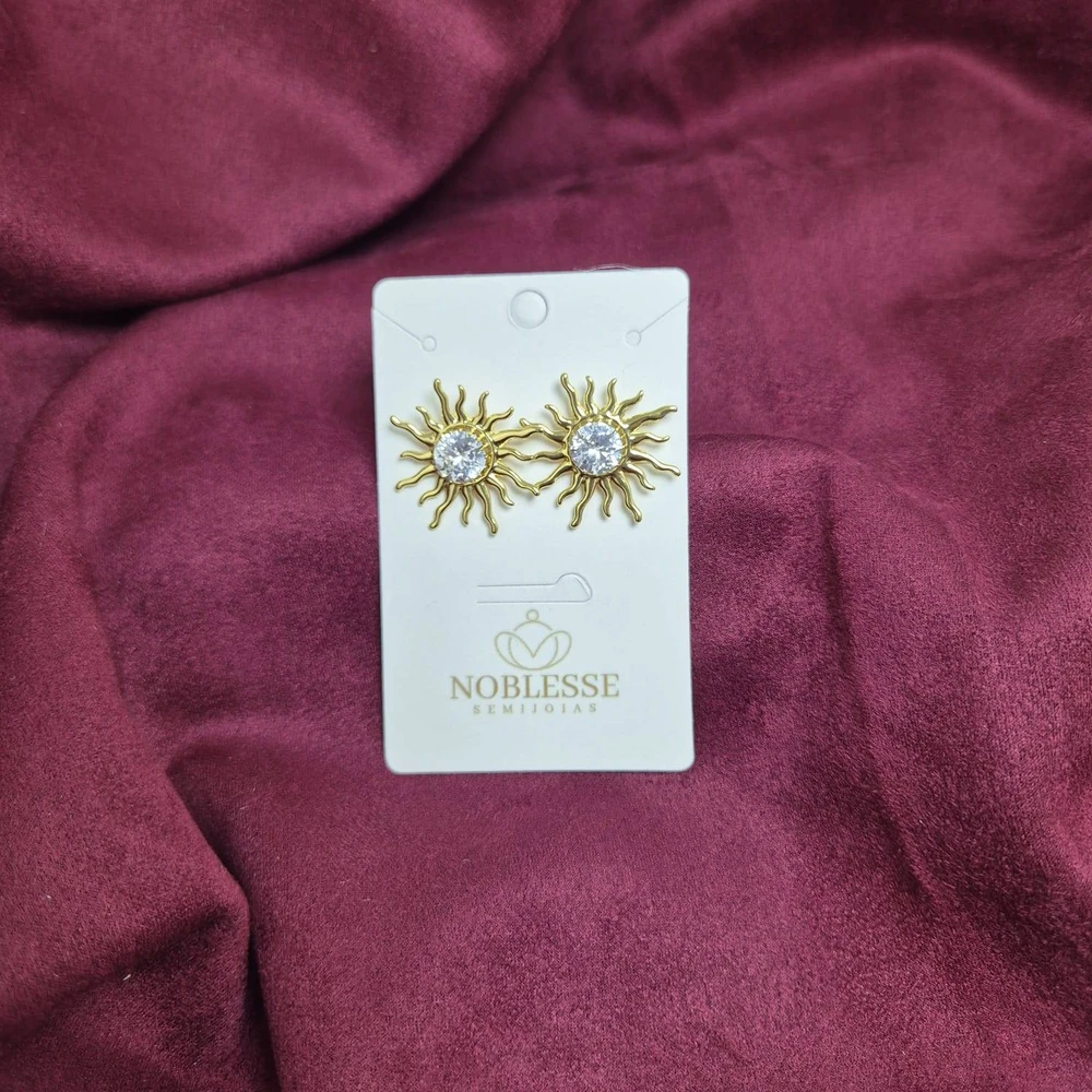 BRINCO SOL COM CRISTAL BANHADO OURO 18K