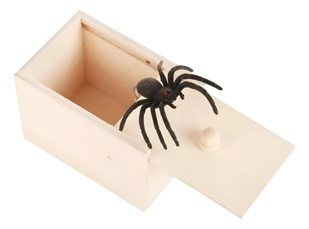 Ao abrir a caixa, uma aranha assustadora salta para fora, garantindo uma reação hilária. Este brinquedo é perfeito para festas, reuniões de família ou simplesmente para animar o Dia a Dia. A diversão é garantida para todas as idades.