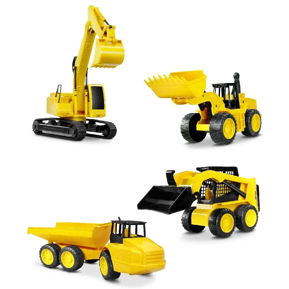 Inclui: 4 veículos – trator, caminhão basculante, escavadeira e carregadeira