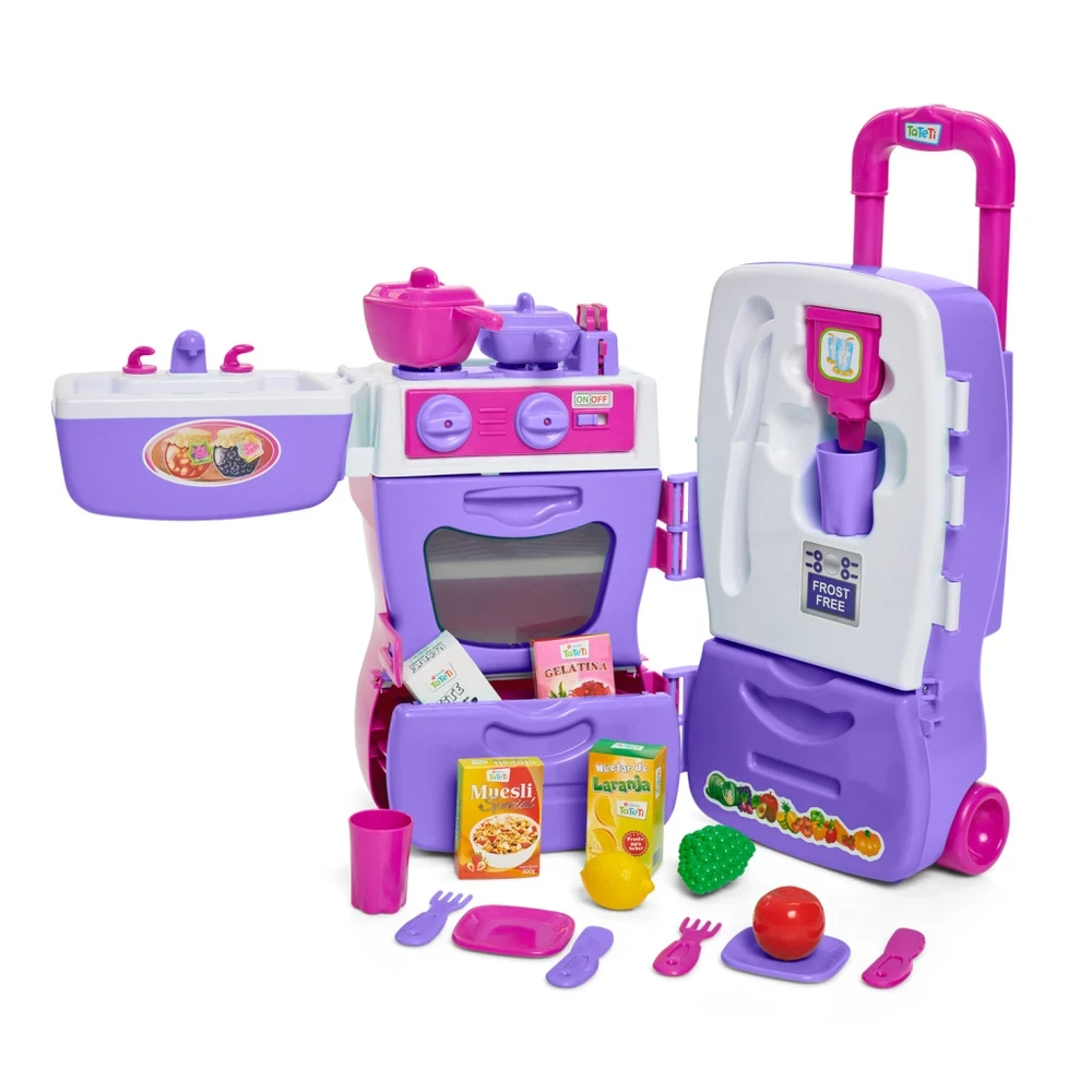 Com a Mobility Chef da Tateti, a cozinha vai aonde a imaginação levar! Uma maleta incrível que se transforma em uma cozinha completa com fogão, forninho, pia, geladeira com filtro que sai água de verdade e diversos acessórios. Com alça retrátil e rodinhas, é perfeita para os pequenos chefs levarem a diversão para todos os lugares.