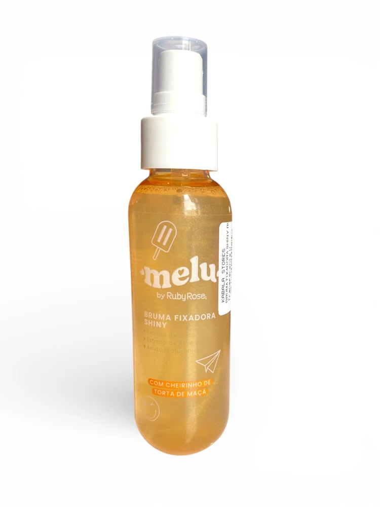 A Bruma Fixadora Shiny Melu da Ruby Rose é o toque final de puro glamour para a sua maquiagem. Com uma fórmula inovadora que combina fixação e luminosidade, esta bruma contém micropartículas de brilho que proporcionam um efeito radiante e saudável à pele. Além de aumentar a durabilidade da produção, ela possui um delicioso e nostálgico "cheirinho de torta de maçã", transformando a finalização da maquiagem em um momento sensorial único e refrescante.