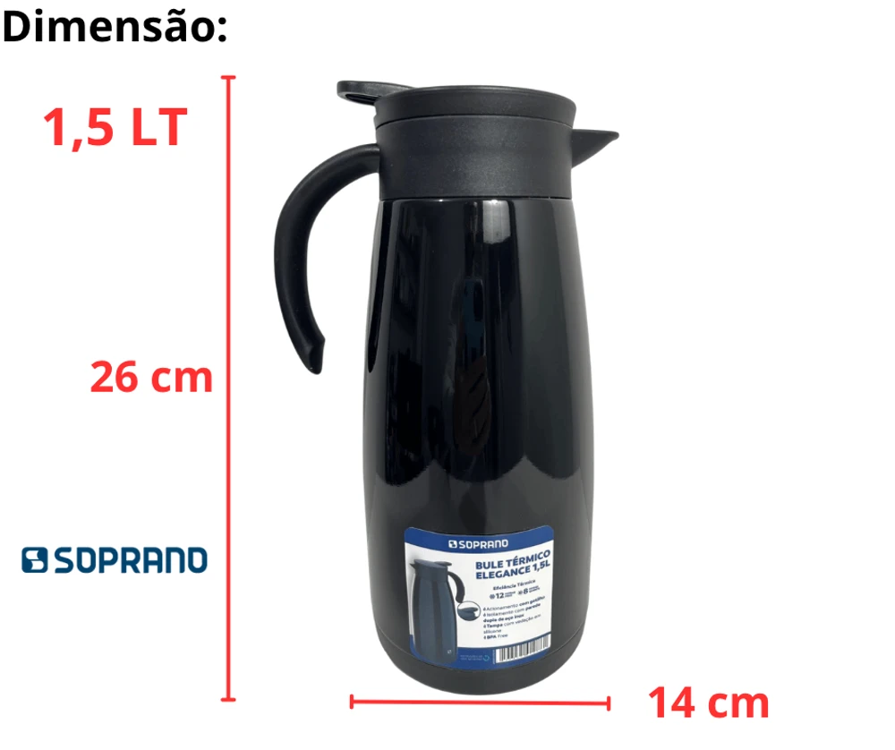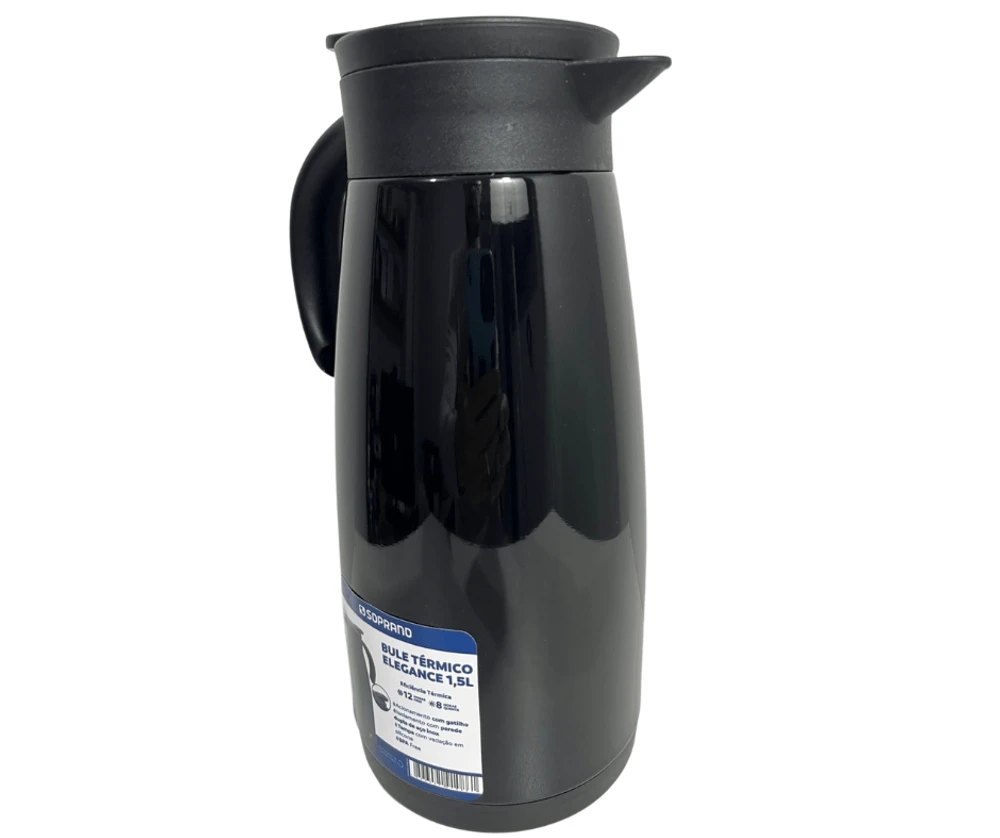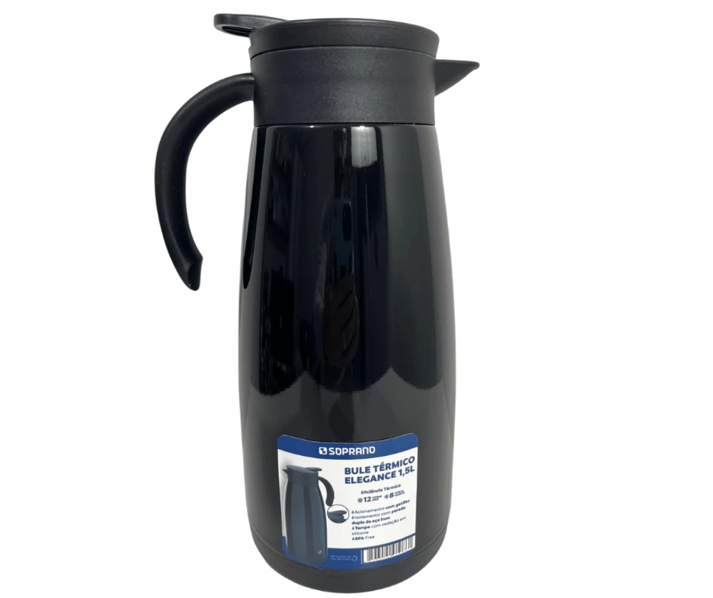 O bule termico é livre de BPA Free (livre de bisfenol), com acionamento por gatilho, o bule Elegance completa a decoração e dá requinte à sua mesa.