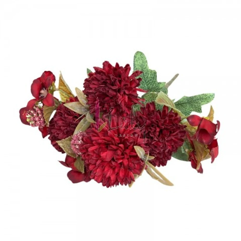 O Buquê de Crisântemos Vermelhos Lily traz charme e cor para qualquer ambiente, com flores vibrantes e acabamento realista que proporcionam sofisticação e delicadeza à decoração. Ideal para arranjos, centros de mesa ou detalhes que valorizam espaços internos.