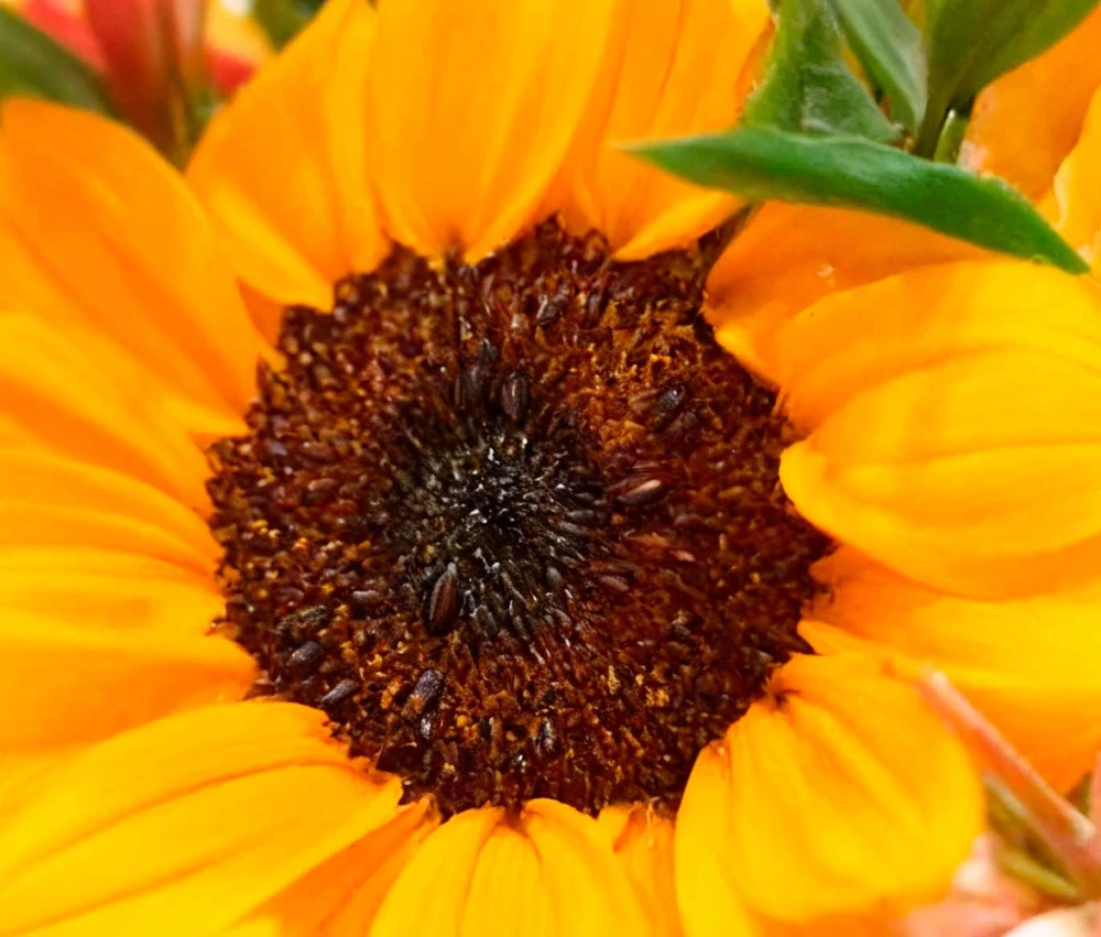 Energia positiva: o girassol simboliza vitalidade e felicidade, enquanto as rosas transmitem amizade e carinho.
