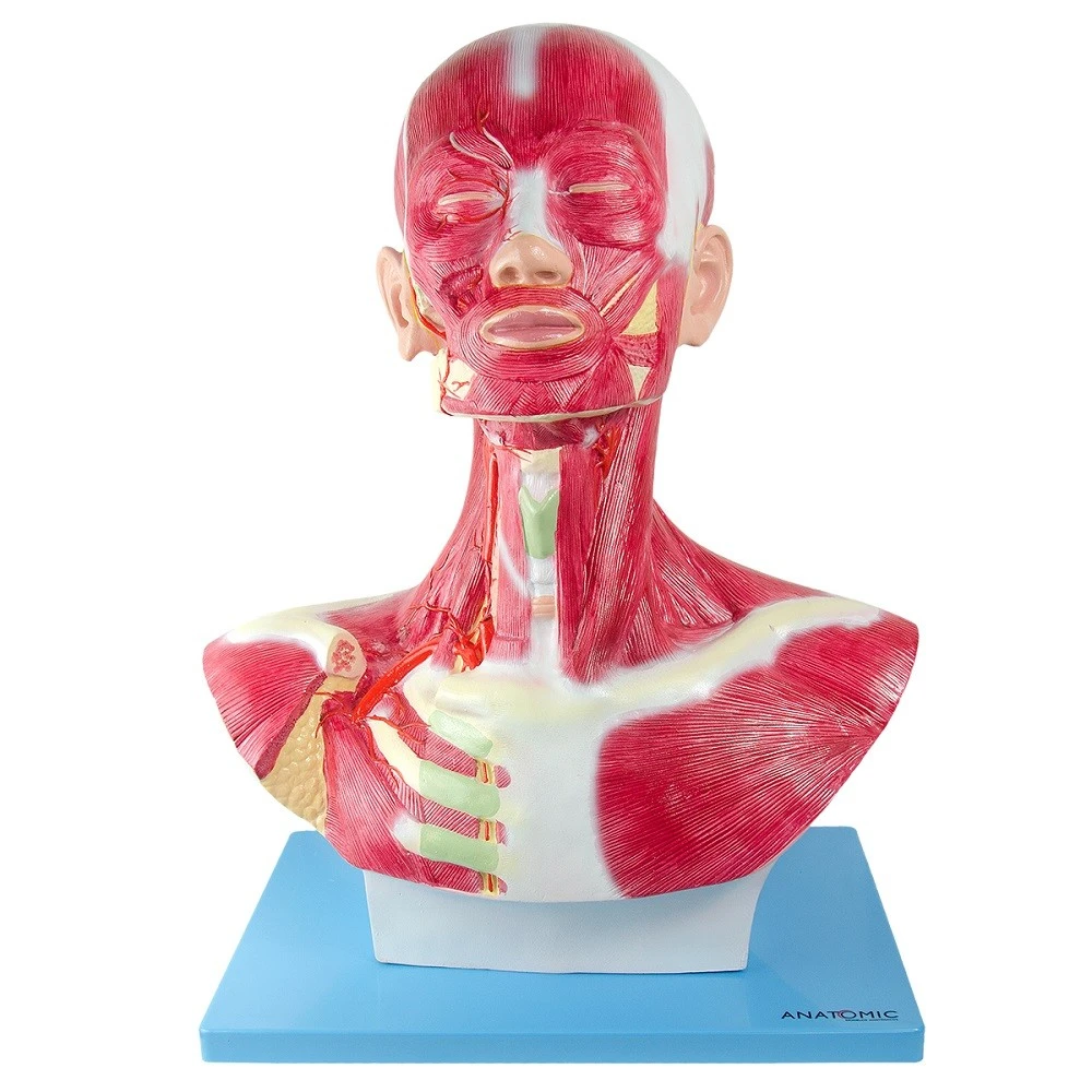 Modelo da musculatura superficial da cabeça e pescoço.Músculos cutâneos da cabeça /Músculos cutâneos da face Músculos da mastigação / Músculo cutâneo do pescoço