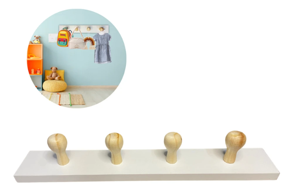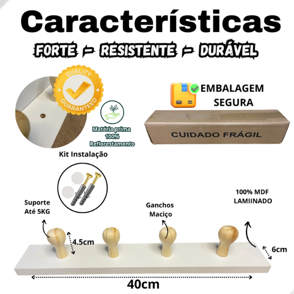 Organize seus espaços com praticidade e estilo com o Cabideiro de Parede em MDF. Ideal para halls de entrada, quartos, banheiros ou áreas de serviço, ele une funcionalidade a um design discreto e moderno. Com 4 ganchos resistentes, é perfeito para pendurar casacos, bolsas, chaves e outros itens do dia a dia.