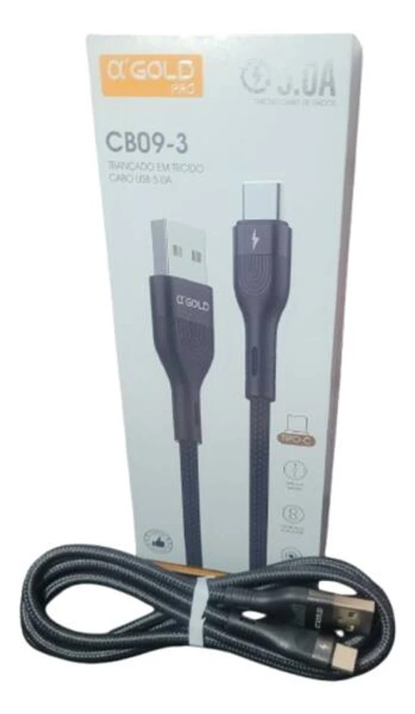 Cabo Carregador Usb Gold Cb09-3 5a Turbo 1 Metro Preto Tipo C