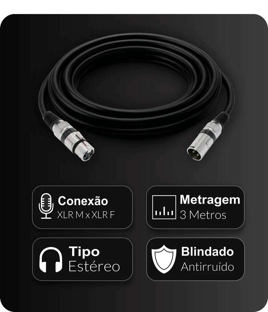 Tipo: Cabo balanceado de áudio (XLR macho → XLR fêmea)