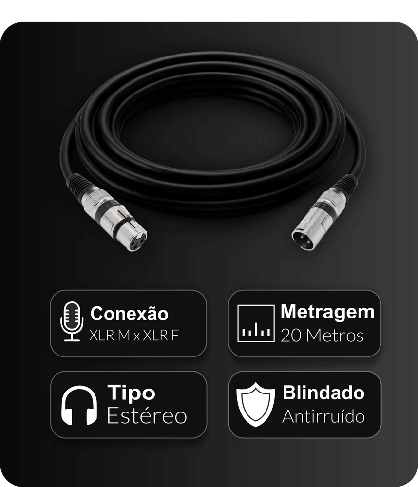 Ideal para microfones, mesas de som, caixas ativas, interfaces de áudio, gravações e eventos ao vivo.