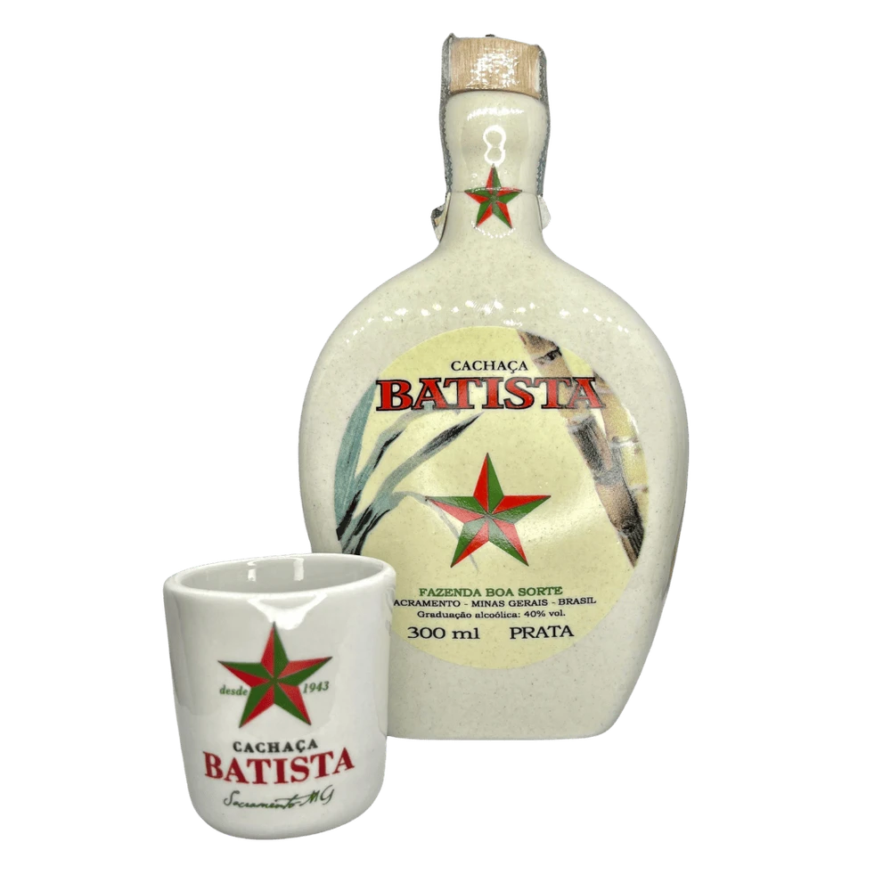 ✔️ Garrafa de louça com 300ml de Cachaça Prata, de sabor suave e autêntico.