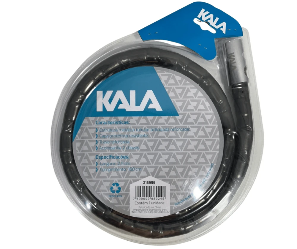 Ao escolher o Cadeado Grosso Chave 250mm x150cm da Kala , você está optando por um produto de alta qualidade que irá proporcionar a segurança que você precisa para a sua bicicleta ou moto.
