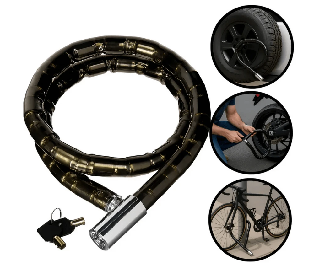 Este cadeado robusto e resistente é a solução perfeita para garantir a segurança da sua bicicleta, moto, estepe do seu carro. Com uma espessura de 25mm e um comprimento de 1,5 metro, este cadeado oferece a proteção que você precisa contra tentativas de roubo.