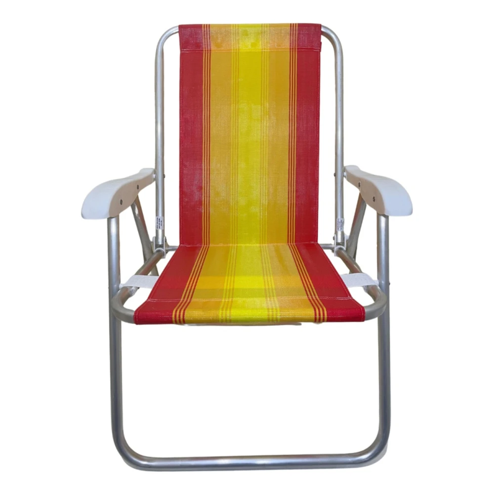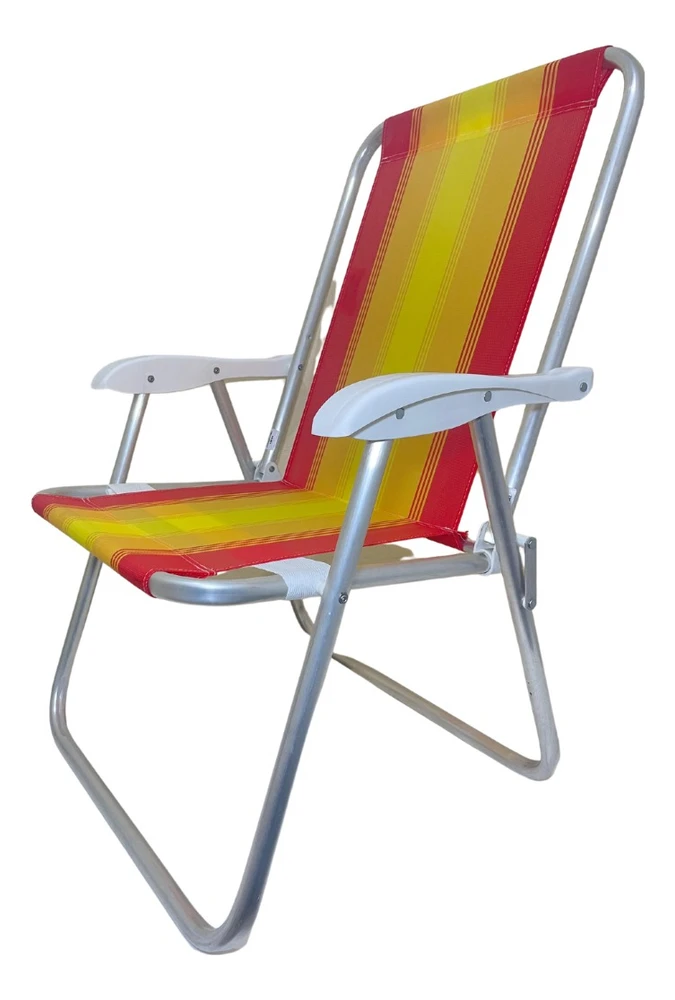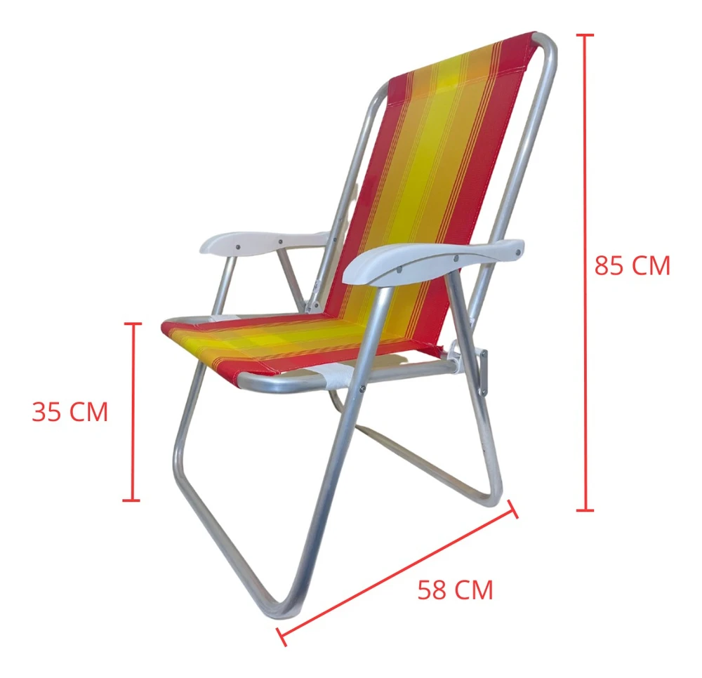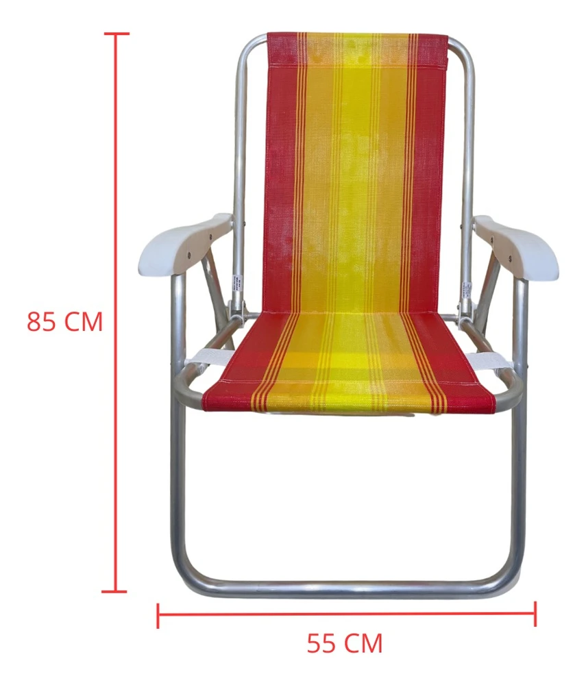 Confeccionada em tecido nylon poliester Colorido e estrutura de alumínio. Braço plástico na cor branca