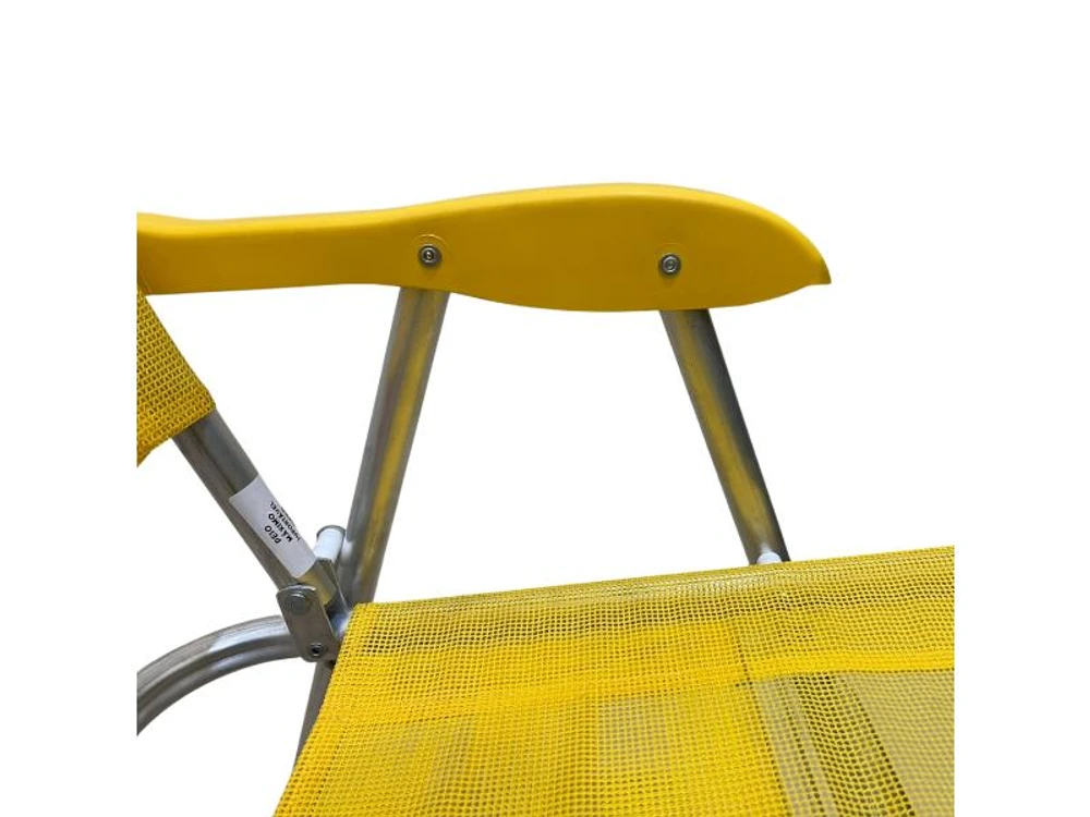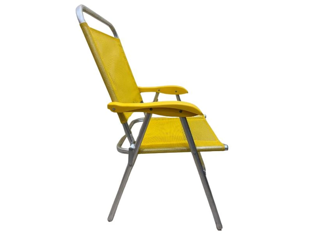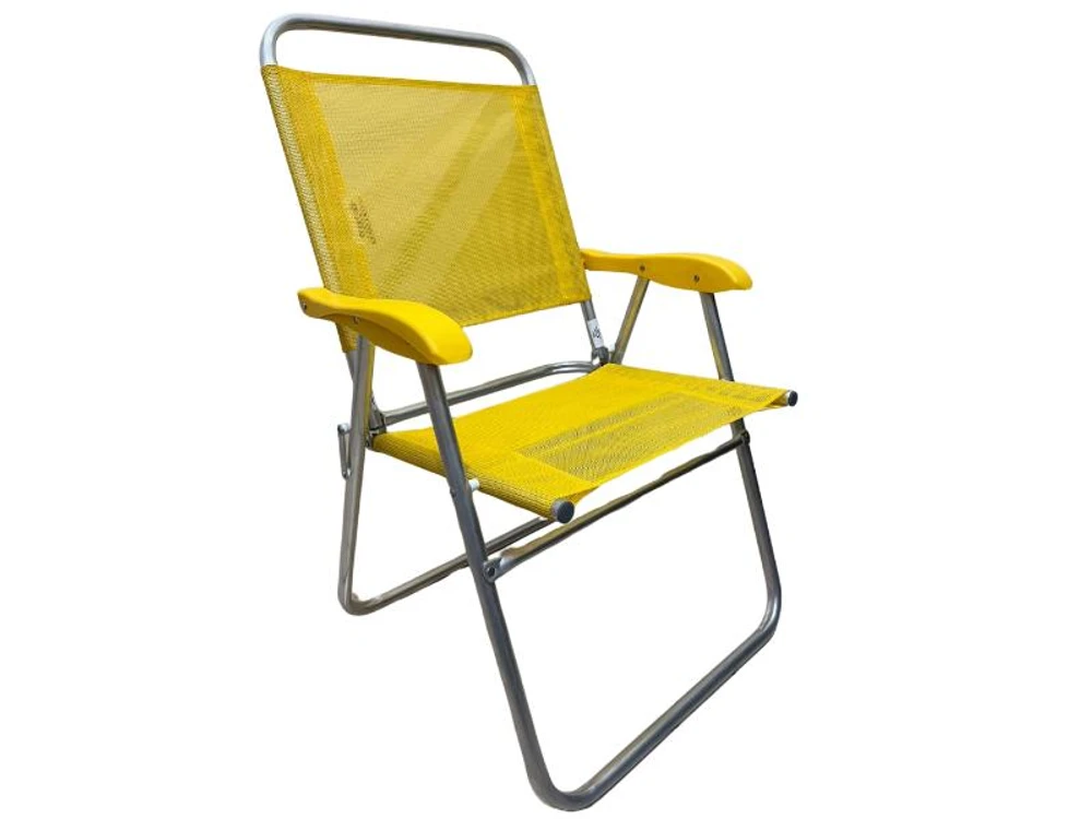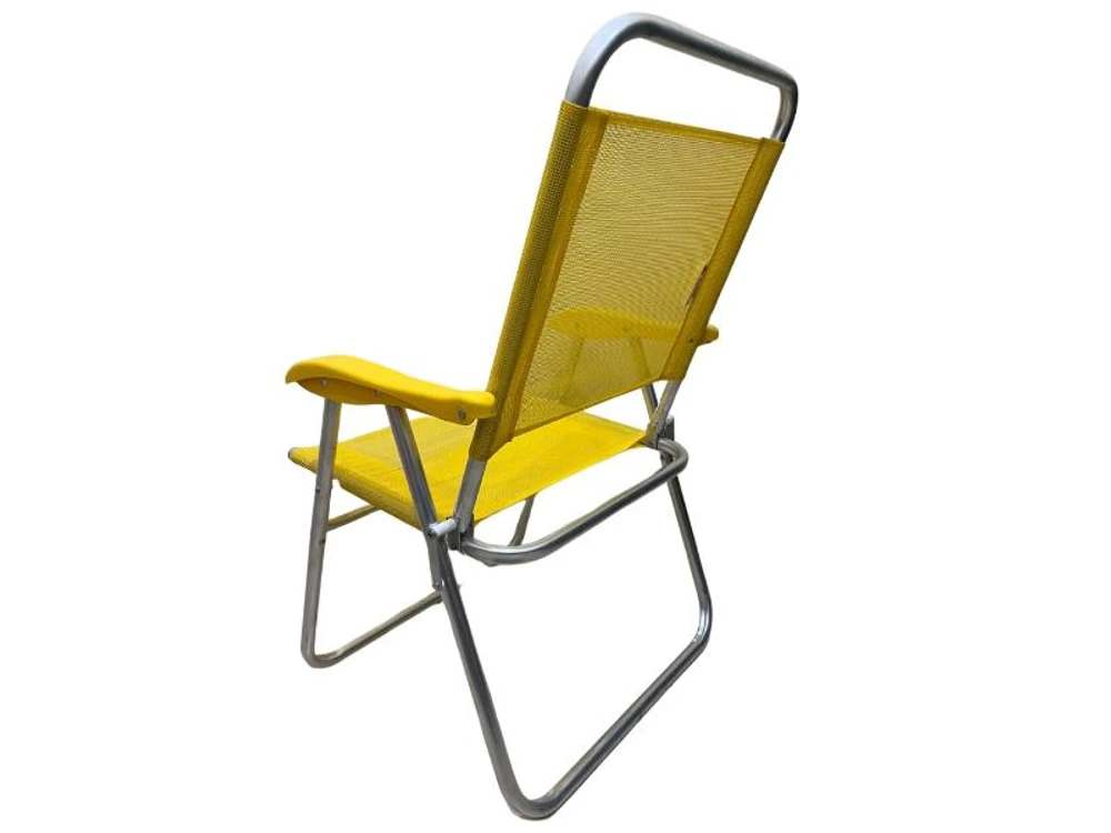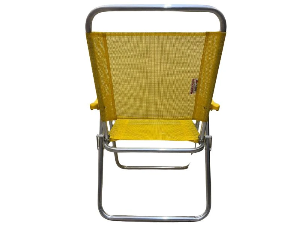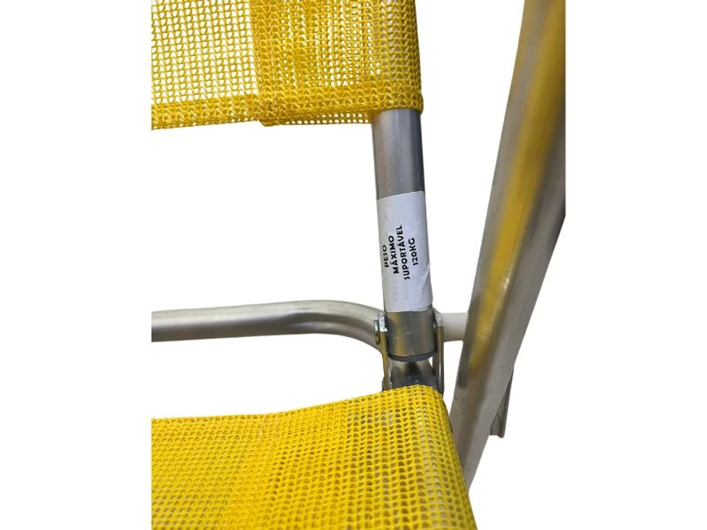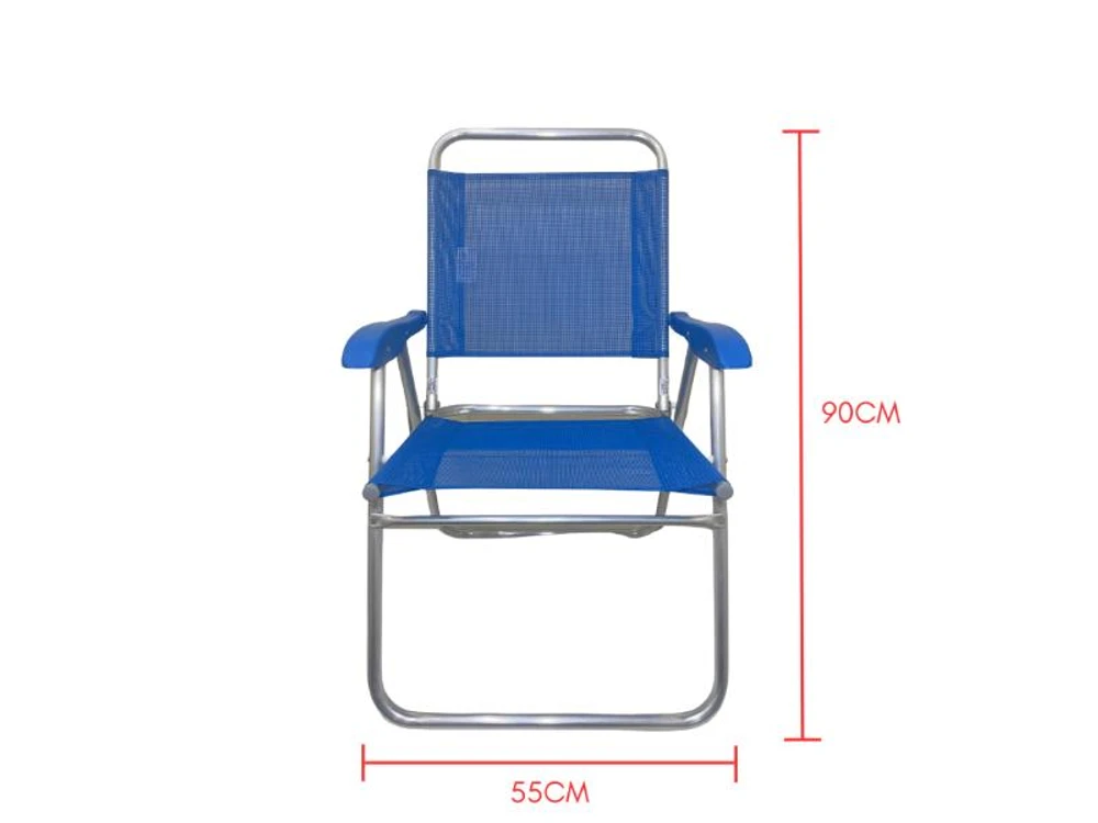 Esta cadeira de praia alta é confeccionada em tecido sanete poliéster e possui uma estrutura de alumínio. O braço é de plástico e da mesma cor do tecido. A cadeira tem capacidade para suportar um peso de até 100 Kgs.