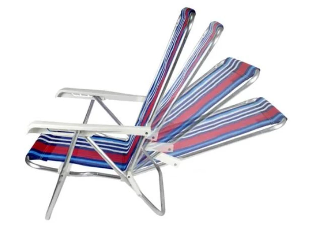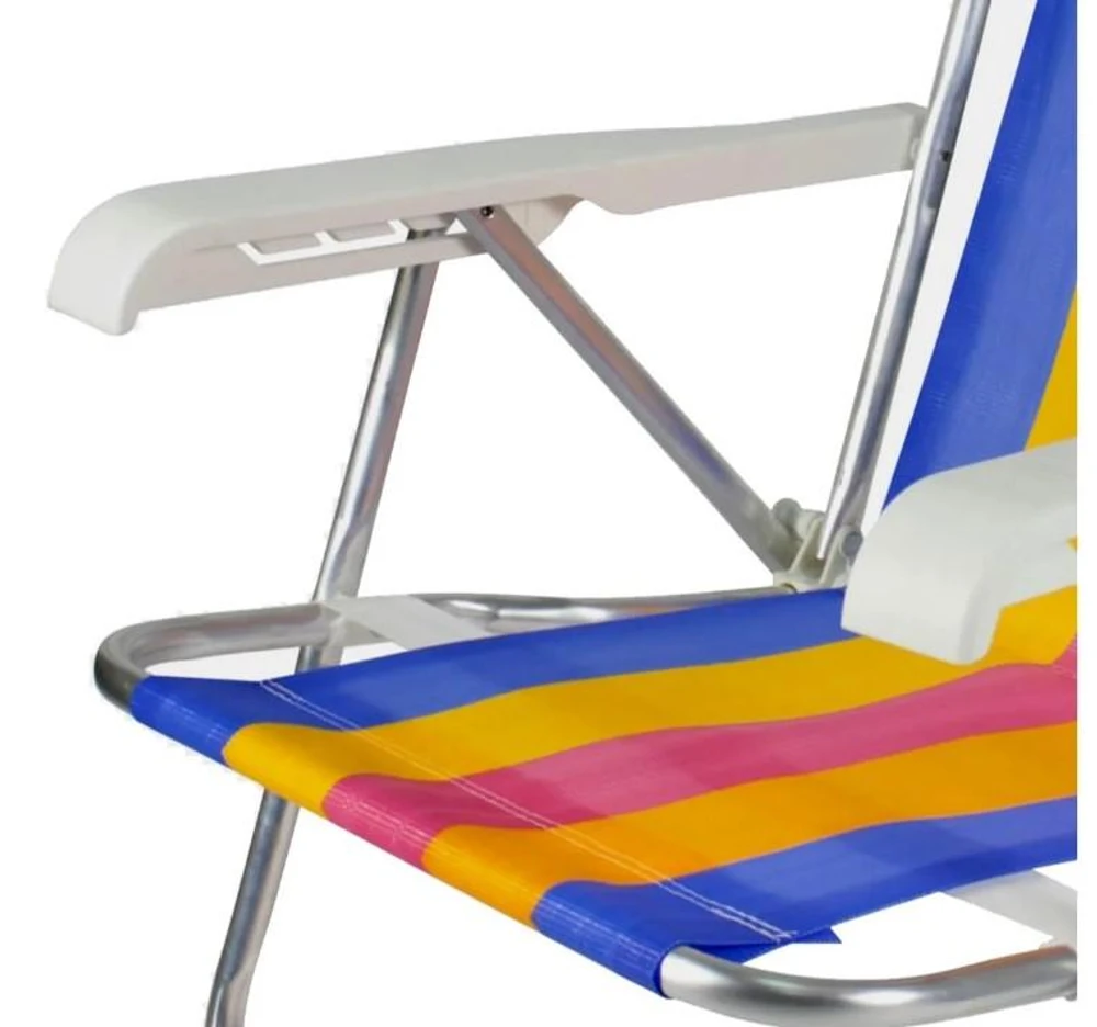 A Cadeira Reclinável 4 Posições Alumínio é fabricada pela Bel em materiais de excelente qualidade. Possui estrutura em alumínio e suas peças plásticas são feitas em polipropileno. O alumínio deixa a Cadeira mais leve e garante maior durabilidade mesmo em áreas litorâneas. Conta ainda com braço largo e ergonômico com regulagem para quatro posições diferentes, para que você relaxe na inclinação que for mais confortável. A Cadeira 4 Posições da Bel é ideal para banhos de sol. Sua tela é produzida em 100 % polietileno.