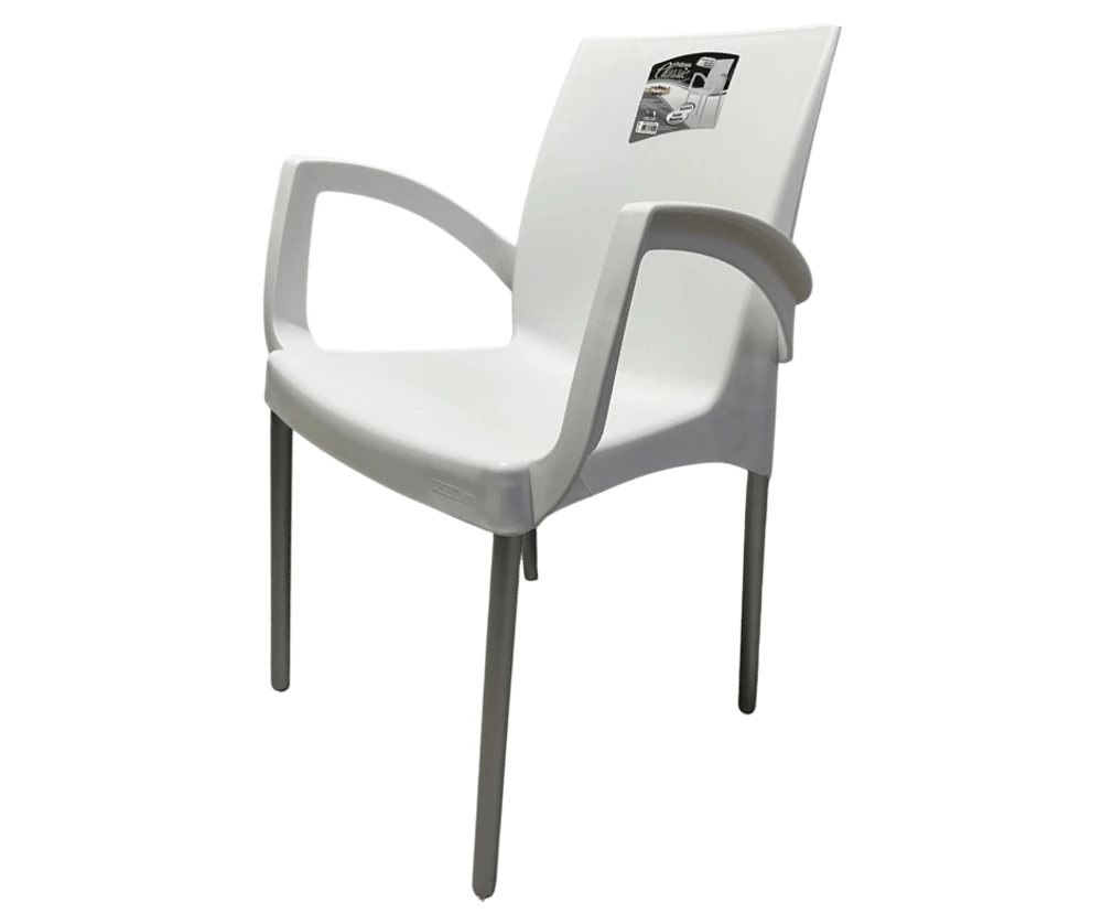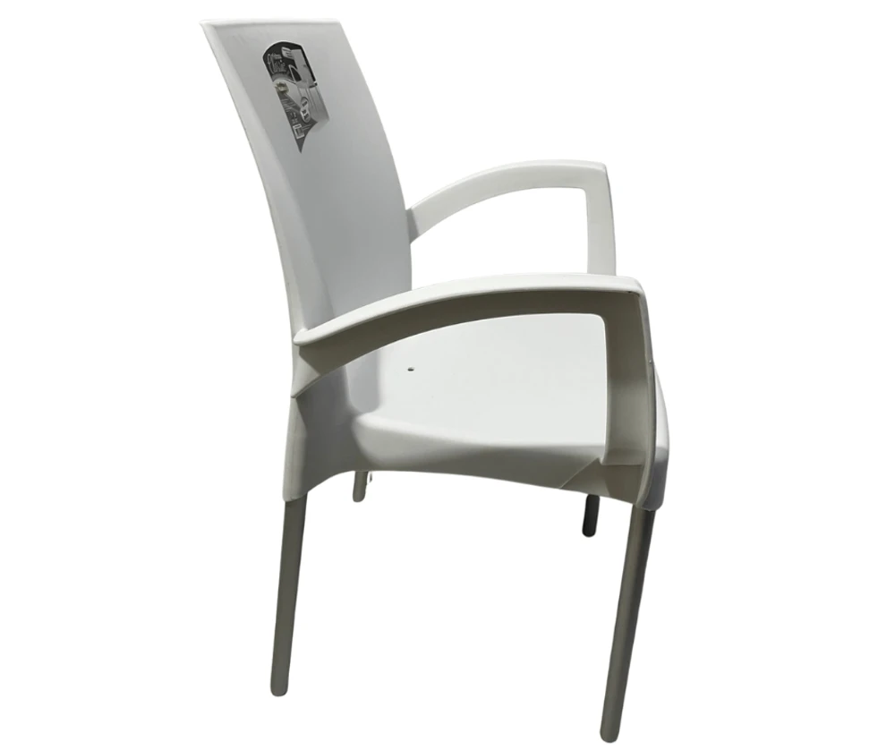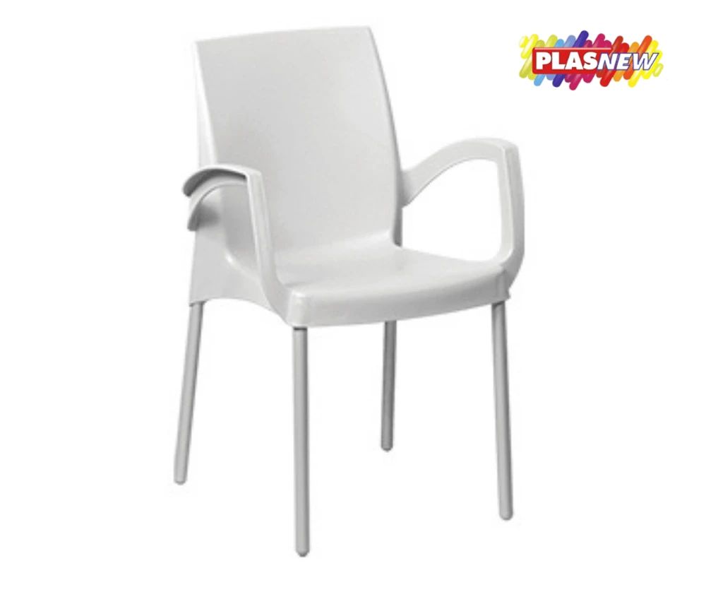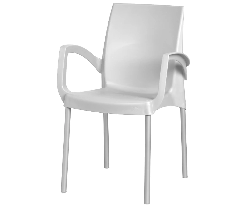 Feita em polipropileno com pés de alumínio, é uma cadeira muito resistente e ainda conta com o apoio de braço, agregando conforto extra para o uso prolongado.