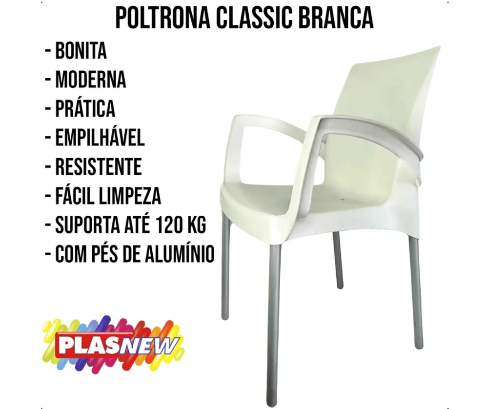Resistente, essa cadeira suporta até 120 kg, possui firmeza e a vida útil é muito longa, te acompanhando por mais tempo que as demais cadeiras plásticas do mercado.